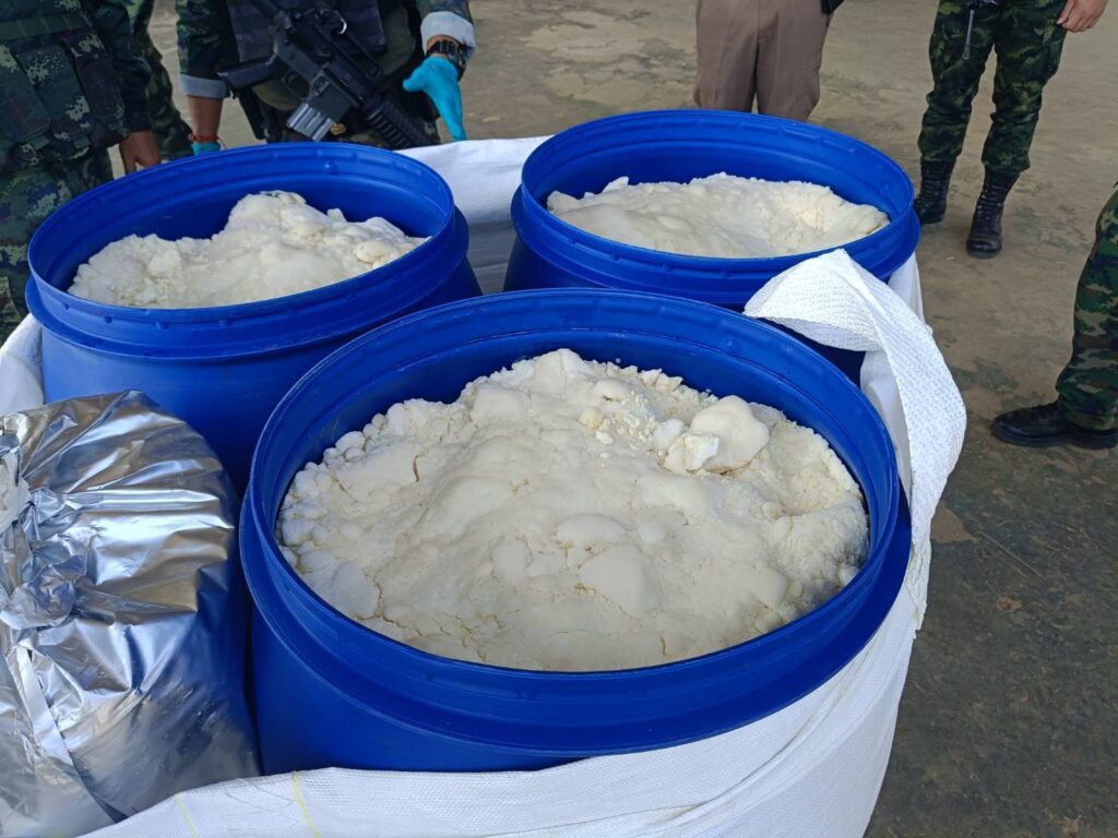 เจ้าหน้าที่จึงได้นำน้ำยาตรวจทดสอบเบื้องต้นผลเปลี่ยนเป็นสีดำและสีฟ้าอ่อน แต่ยังไม่แน่ชัดว่าเป็นสารเคมีชนิดใด จึงได้ทำการเก็บตัวอย่างวัตถุดังกล่าวใส่ขวดพลาติกจำนวน 7 ขวด ส่งไปตรวจที่สถาบันวิชาการและตรวจพิสูจน์ยาเสพติด สำนักงาน ป.ป.ส. เพื่อยืนยันว่าเป็นสารเคมีหรือเป็นยาเสพติดให้โทษหรือไม่อย่างไรต่อไป…