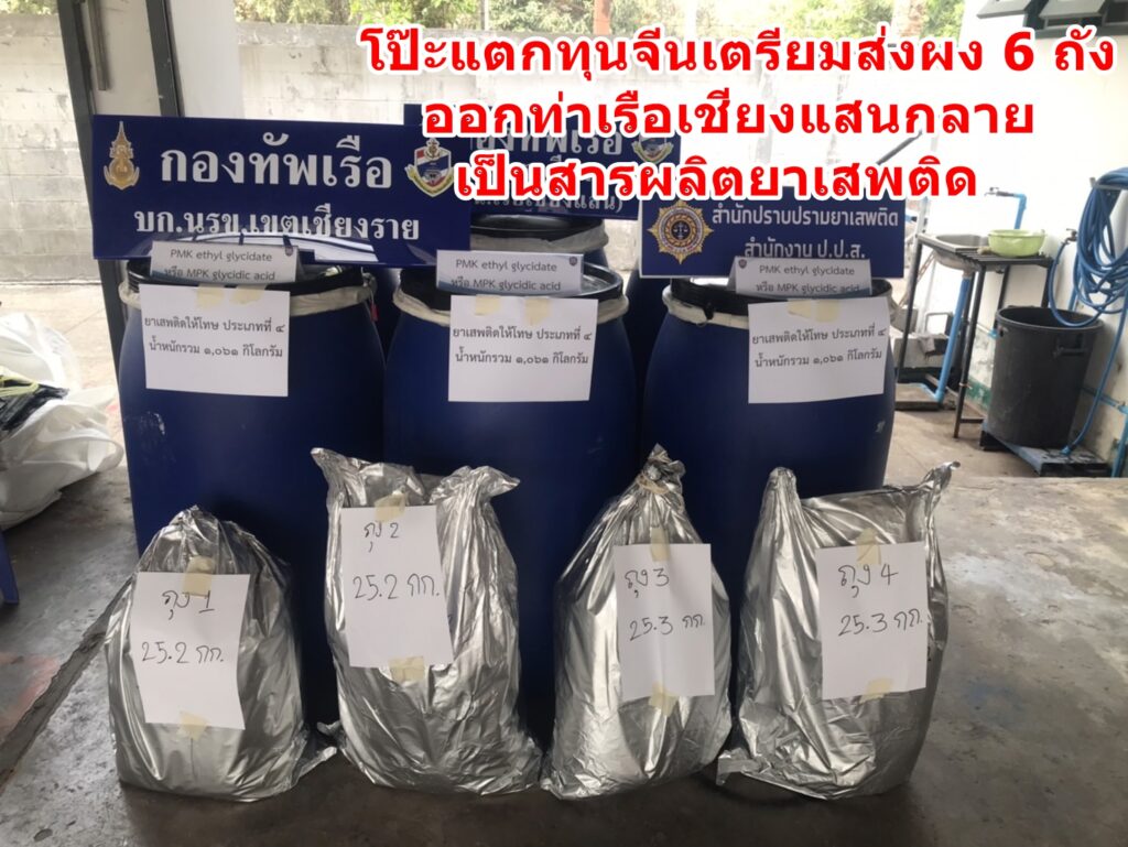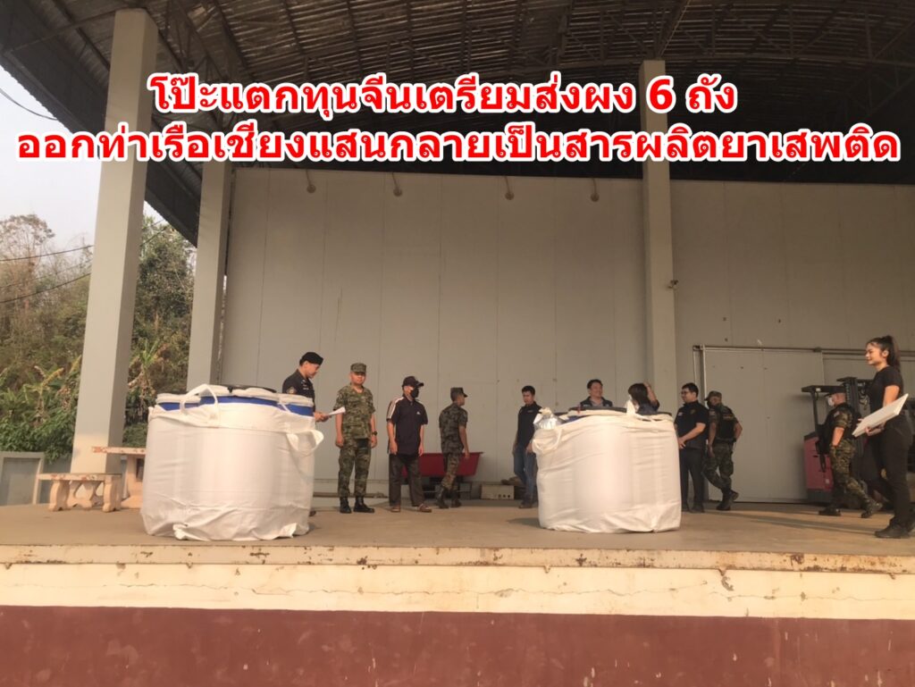 โป๊ะแตกทุนจีนเตรียมส่งผง 6 ถัง ออกท่าเรือเชียงแสนกลายเป็นสารผลิตยาเสพติด