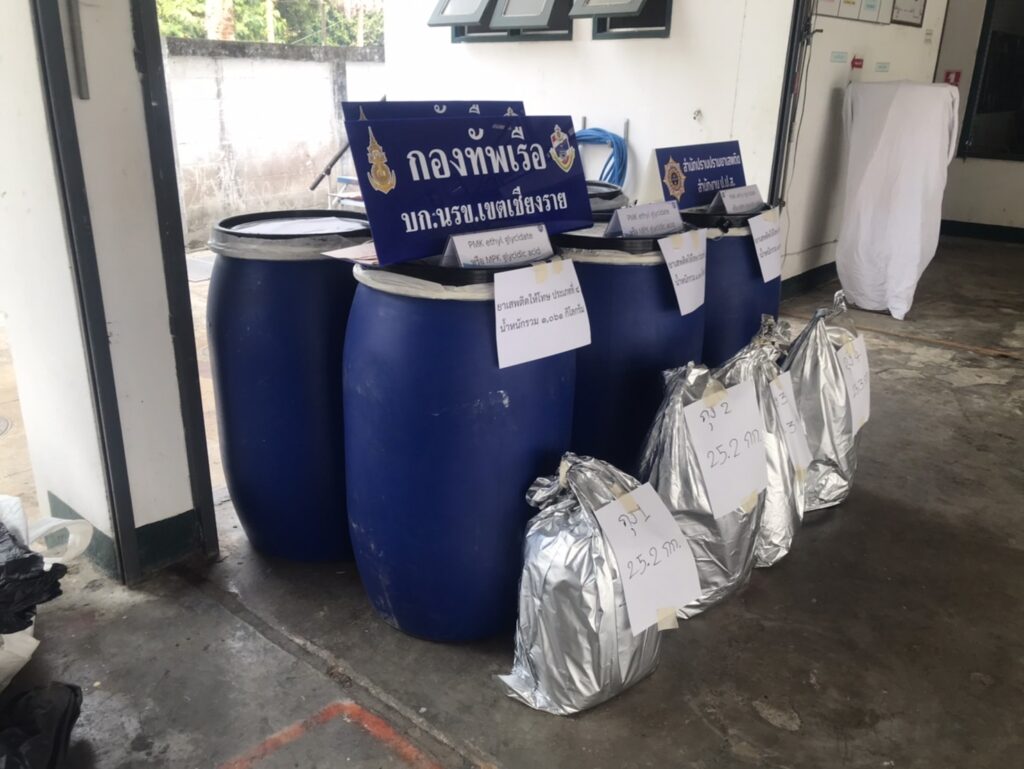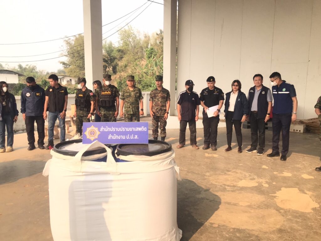 ทั้งนี้สารเคมีทั้งหมดมีนายทุนจีนรายหนึ่งนำไปฝากเก็บเอาไว้ที่โกดังของเอกชนท้องถิ่นที่ อ.เชียงแสน อ้างว่าเป็นเครื่องจักรที่จะขอนำส่งออกไปยังรัฐฉาน ประเทศเมียนมา แต่ปรากฎว่าเจ้าหน้าที่เห็นว่าส่อพิรุธเพราะถูกบรรจุในถังทรงกลม 6 ถัง และถุงพลาสติกอีกหลายถุงไม่น่าจะเป็นเครื่องจักร จึงได้ทำการเปิดตรวจสอบก็พบเป็นสารตั้งต้นเพื่อการผลิตยาเสพติดดังกล่าว จึงได้ออกติดตามเพื่อขยายผลหาตัวผู้ขอส่งวัสดุดังกล่าวเพื่อดำเนินการตามกฎหมายต่อไป.. พร้อมเตรียมแถลงข่าว