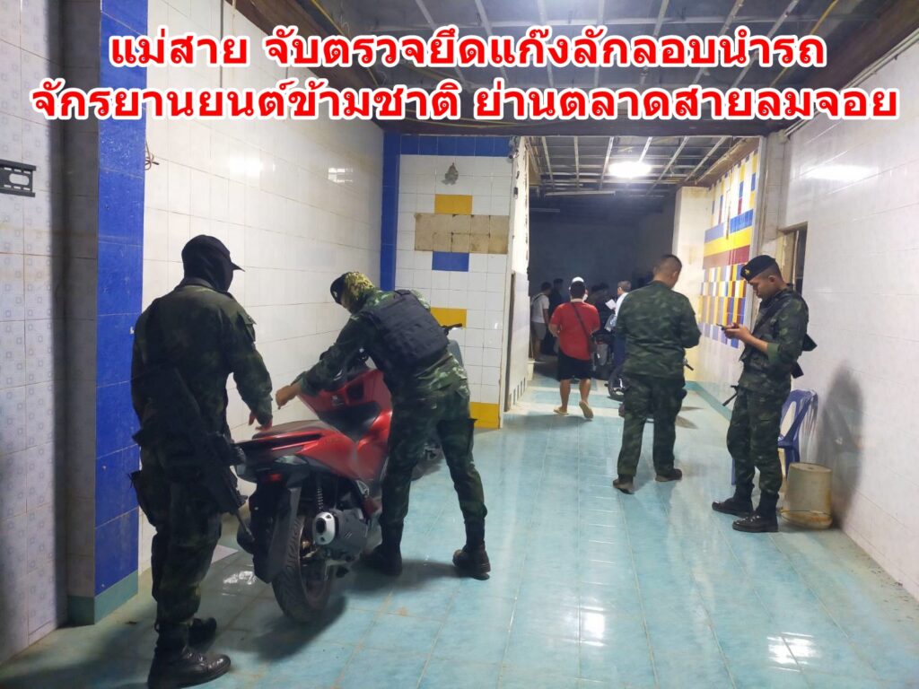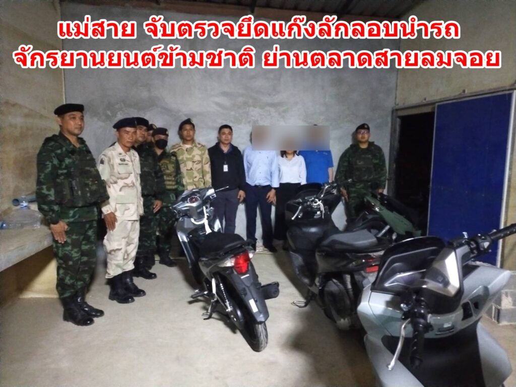 แม่สาย จับตรวจยึดแก๊งลักลอบนำรถจักรยานยนต์ข้ามชาติ ย่านตลาดสายลมจอย