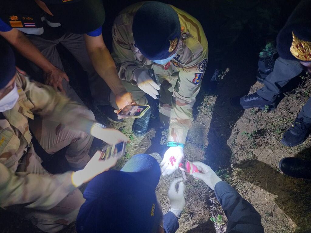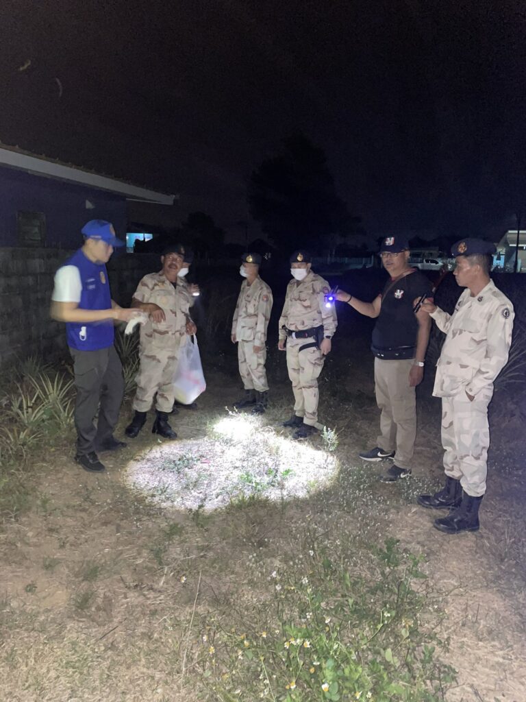 ในขณะนั้นเจ้าหน้าที่ได้รับแจ้งว่าพบบุคคลต้องสงสัย เดินอยู่บริเวณริมถนนเชิงเขาในเขตพื้นที่ บ.สันทรายปู่ยี่ เจ้าหน้าที่จึงเร่งรุดเข้าไปตรวจสอบเหตุดังกล่าว ต่อมาบุคคลต้องสงสัยได้เห็นเจ้าหน้าที่จึงได้วิ่งหลบหนีเข้าไปในสวนสับปะรดอาศัยความมืดหลบหนีไป เจ้าหน้าที่จึงได้เข้าไปตรวจสอบบริเวณที่บุคคลต้องสงสัยวิ่งหลบหนีไป พบถุงพลาสติกสีชมพู 1 ใบ ถุงพลาสติกสีน้ำเงิน 1 ใบ และถุงพลาสติกใส 1 ใบ ตรวจสอบเบื้องต้นพบว่าเป็นยาเสพติดให้โทษประเภท 1 (ยาบ้า – เมทแอมเฟตามีน) จึงได้นำของกลางทั้ง 3 ถุง มาตรวจนับรวมเป็นยาบ้า