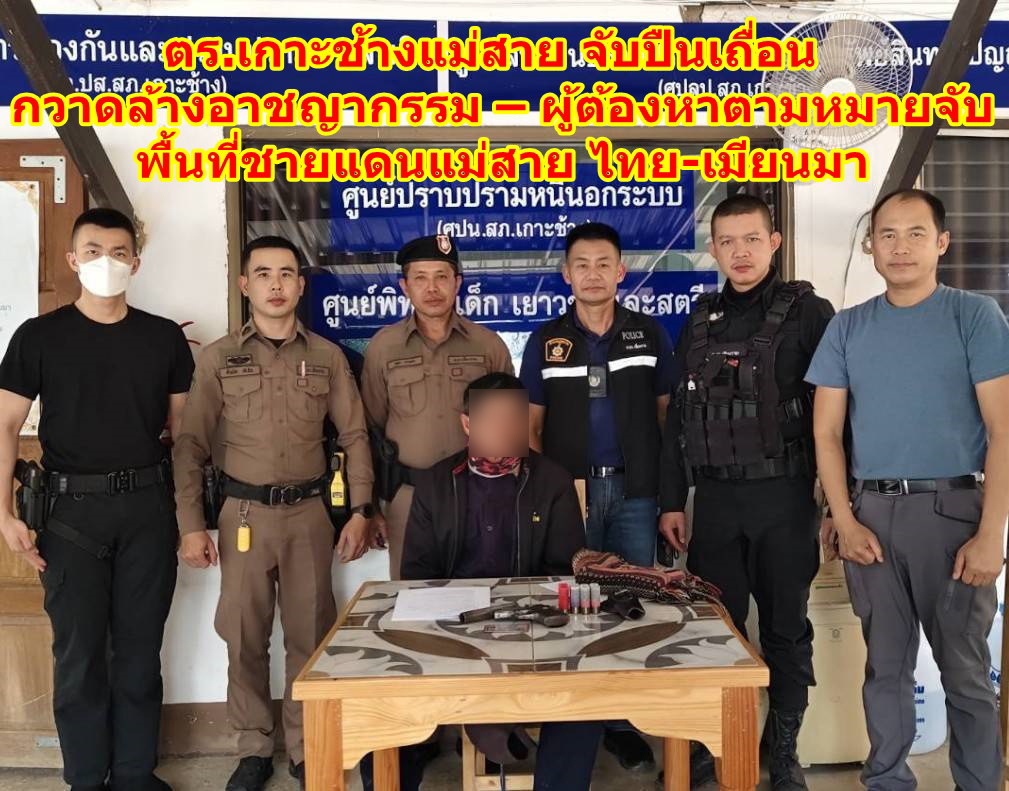ตร.เกาะช้างแม่สาย จับปืนเถื่อน กวาดล้างอาชญากรรม – ผู้ต้องหาตามหมายจับ พื้นที่ชายแดนแม่สาย ไทย-เมียนมา