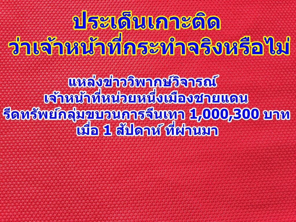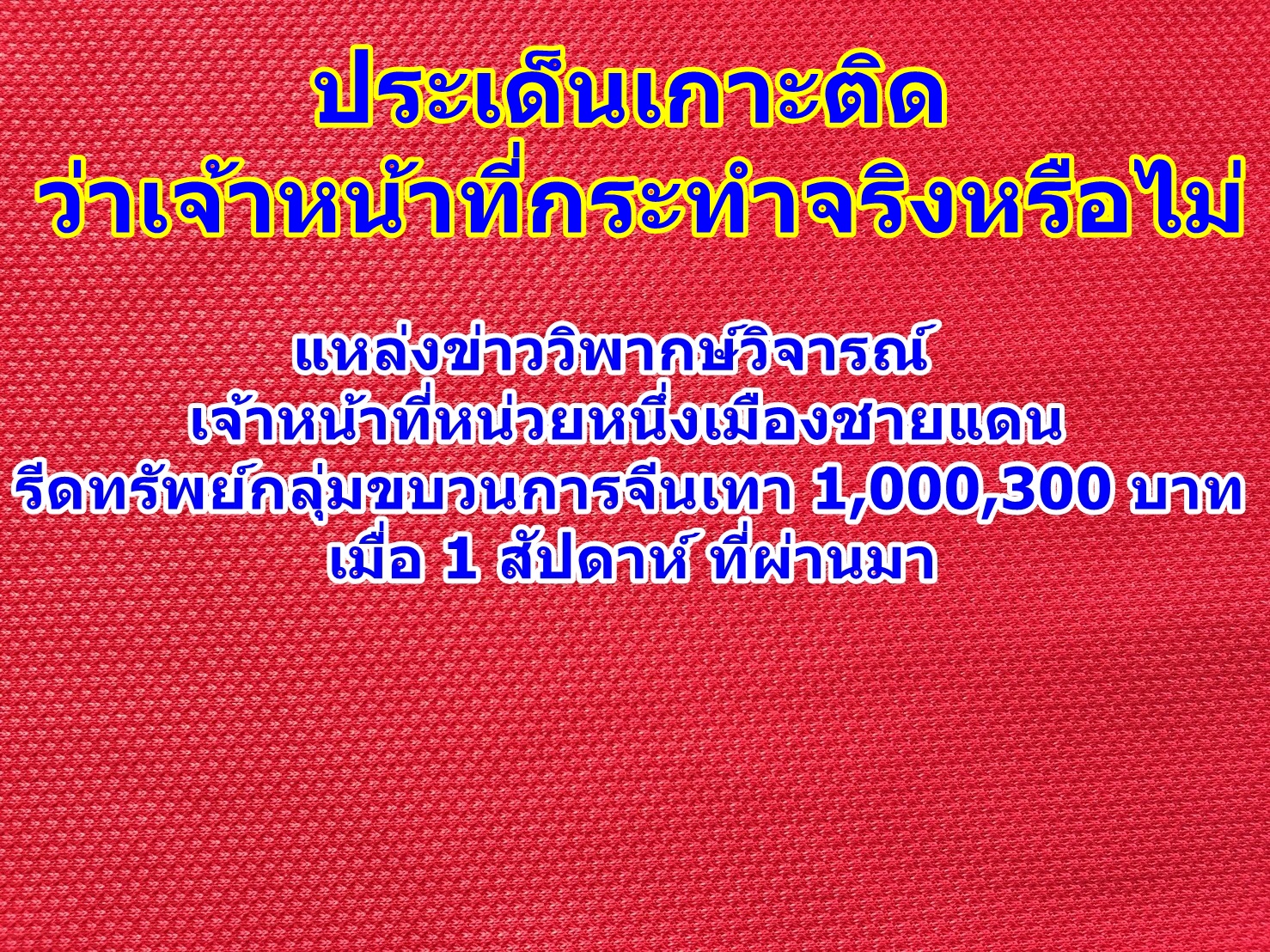 แหล่งข่าววิพากษ์วิจารณ์ เจ้าหน้าที่หน่วยหนึ่งเมืองชายแดน รีดทรัพย์กลุ่มขบวนการจีนเทา 1,000,300 บาท เมื่อ 1 สัปดาห์ ที่ผ่านมา