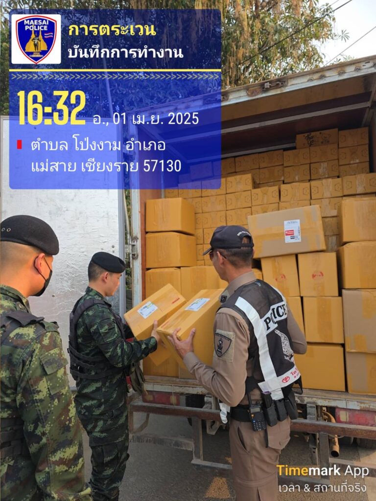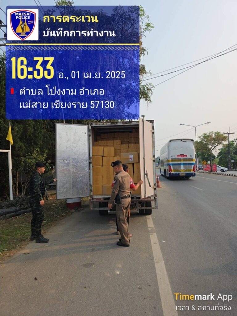 เมื่อวันที่ 1 เมษายน 2568 ที่ผ่านมา เวลา 18.30 น. ทางด้าน พ.ต.อ.เทคนิค จันสี ผกก.สภ.แม่สาย นายปฏิญญา คุณมงคล หัวหน้าสรรพสามิตแม่สาย พ.ต.ท. รณกฤต รหัทสุวรรณ สวป.สภ.แม่สาย ร.ท. สุฐิต หมีไทย หัวหน้าชุดปฏิบัติการด่านตรวจบ้านถ้ำ เจ้าหน้าที่ตำรวจจุดตรวจสกัดกั้นด่านตรวจถ้ำปลา สภ.แม่สาย – ทหารกองกำลังผาเมือง – สรรพสามิต ร่วมกับชุดเจ้าหน้าที่สืบสวนที่ 9 มว.สท.กกล.ผาเมือง