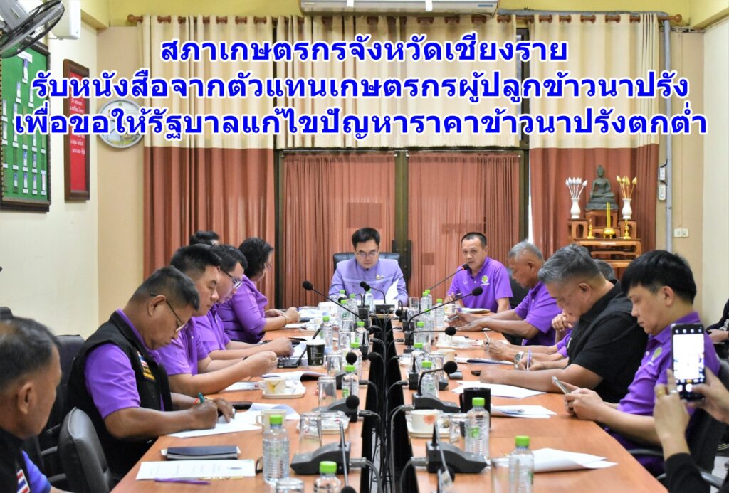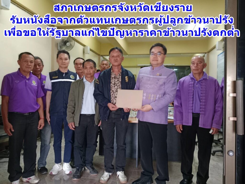สภาเกษตรกรจังหวัดเชียงราย รับหนังสือจากตัวแทนเกษตรกรผู้ปลูกข้าวนาปรัง เพื่อขอให้รัฐบาลแก้ไขปัญหาราคาข้าวนาปรังตกต่ำ