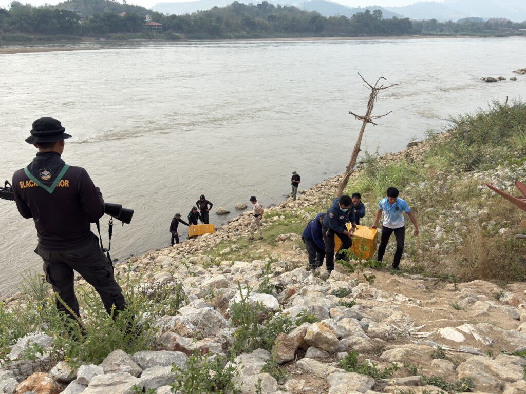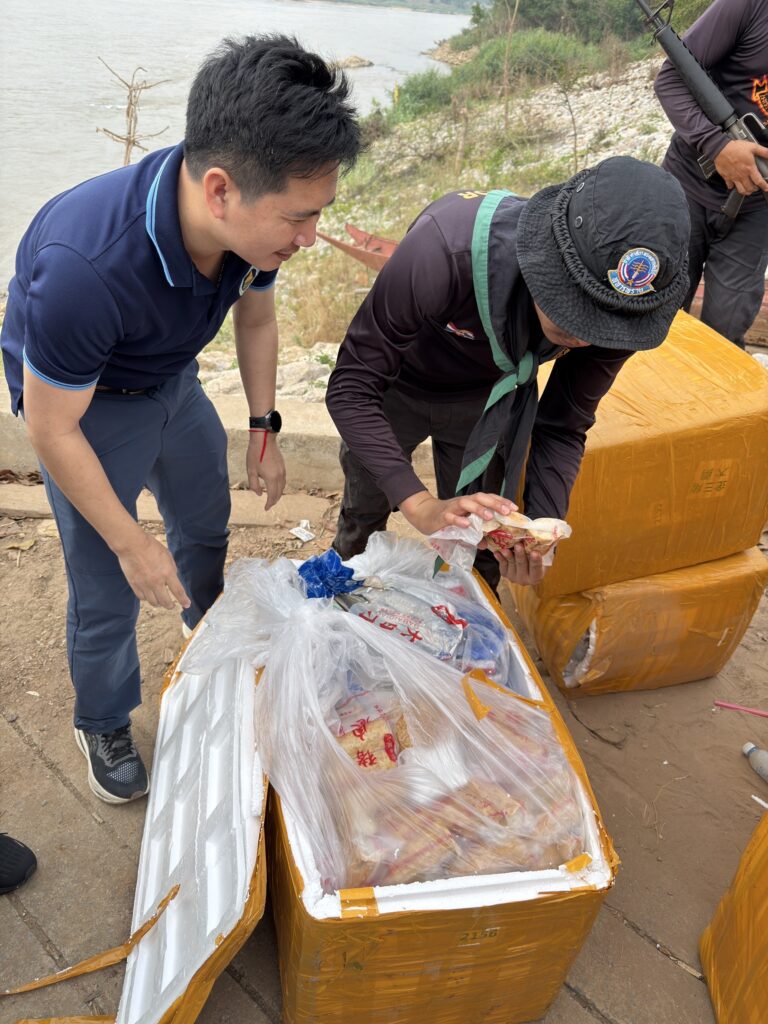 วันนี้ ( 11 เม.ย.68 ) เจ้าหน้าที่ฝ่ายปกครอง อ.เชียงของ จ.เชียงราย ร่วมกับด่านศุลกากรเชียงของ ทหาร ร้อย ทพ.3101 ฉก.ทพ.31 กองกำลังผาเมือง และด่านกักสัตว์เชียงราย ได้ตรวจยึดของกลางเนื้อแช่แข็งได้เป็นจำนวนมาก หลังจากเย็นวันที่ 10 เม.ย. 68 เจ้าหน้าที่ออกตรวจบริเวณริมฝั่งแม่น้ำโขงชายแดนไทย-สปป.ลาว พื้นที่หมู่บ้านดอนที่ หมู่ 3 ต.ริมโขง อ.เชียงของ ซึ่งมีถนนเลียบแม่น้ำโข ต่อมาเจ้าหน้าที่ได้ตรวจพบมีกล่องพัสดุวางอยูริมฝั่งจำนวน 22 ใบ จึงเข้าไปตรวจดูปรากฎว่าพบภายในบรรจุเนื้อสัตว์แช่แข็งและเนื้อสัตว์แปรรูปแข่แข็งถูกบรรจุอยู่เต็ม บริเวณดังกล่าวไม่พบบุคคลใดคาดว่ามีการลักลอบนำลงเรือมาจากประเทศเพื่อนบ้านแล้วขนขึ้นมาวางบนฝั่งไทย แต่พบเห็นเจ้าหน้าที่จึงได้หลบหนีไป