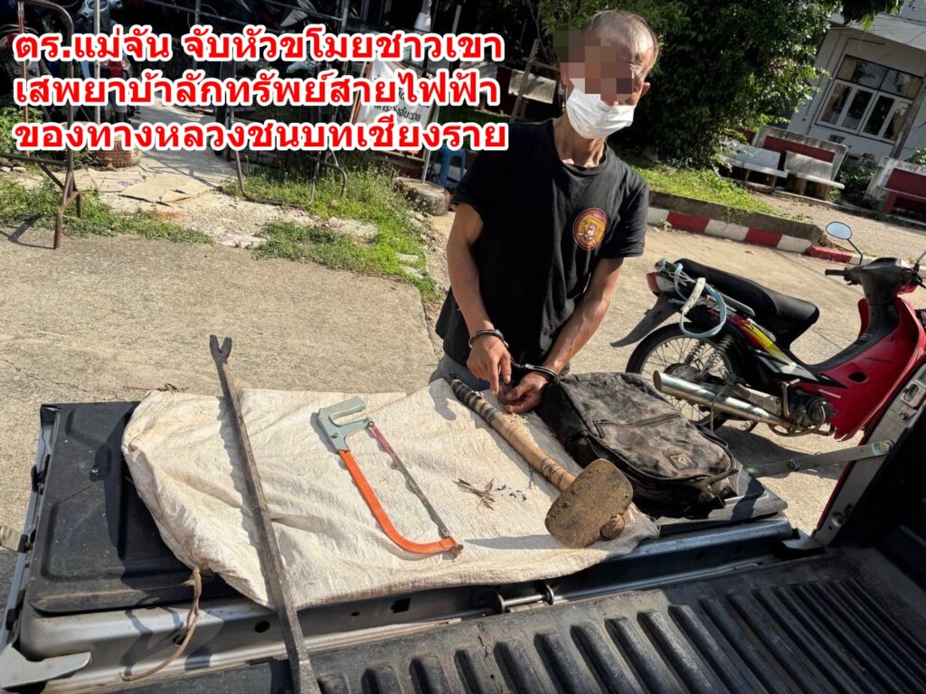 ตร.แม่จัน จับหัวขโมยชาวเขา เสพยาบ้าลักทรัพย์สายไฟฟ้าของทางหลวงชนบท