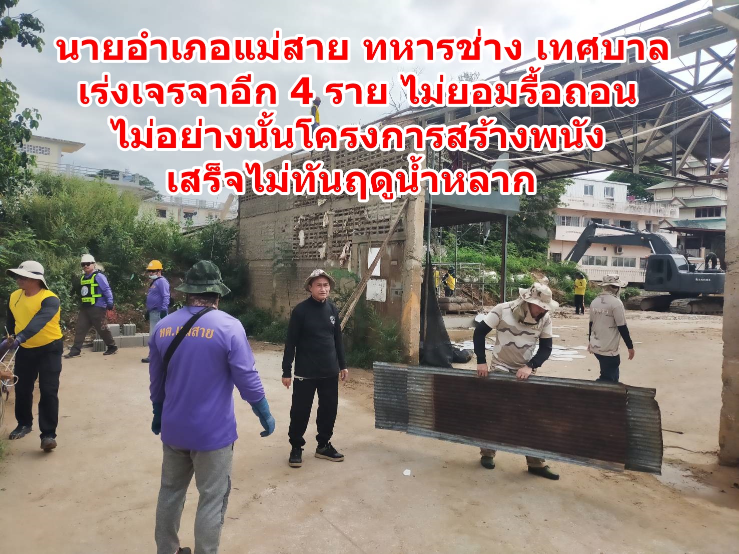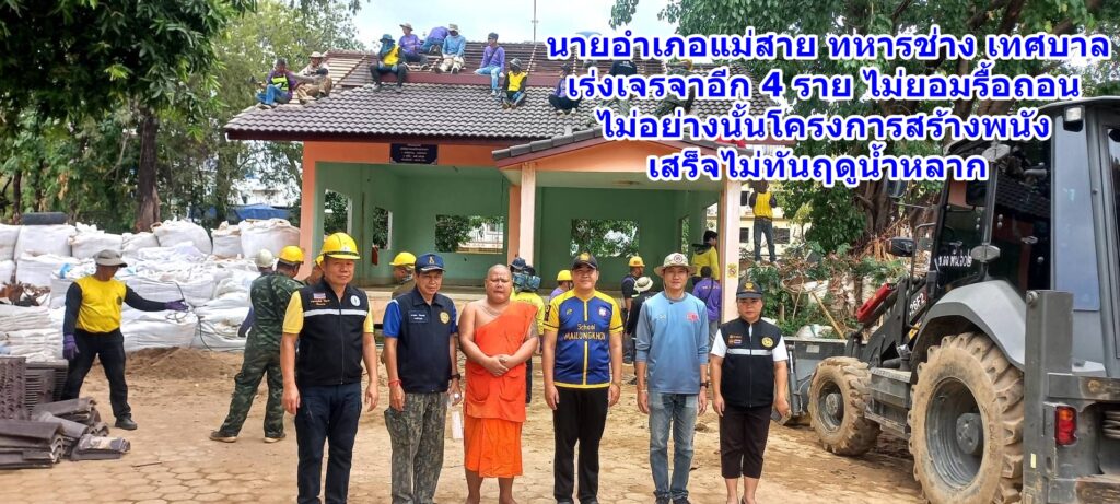 นายอำเภอแม่สาย – ทหารช่าง – เทศบาล เร่งเจรจาอีก 4 ราย ไม่ยอมรื้อถอน ไม่อย่างนั้นโครงการสร้างพนังเสร็จไม่ทันฤดูน้ำหลาก
