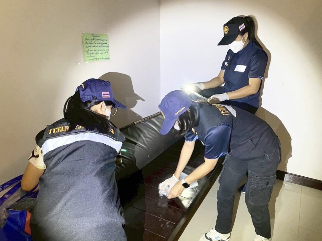 ผลการตรวจสอบภายในร้านพบว่ามีการดัดแปลงอาคารพาณิชย์ 3 ชั้น 1 คูหา โดยชั้นที่ 1 ใช้เป็นสถานที่รับรองลูกค้าสำหรับนั่งดื่มเครื่องดื่มแอลกอฮอล์และพูดคุยกับพนักงานนวด ส่วนชั้นที่ 2 และ 3 มีการกั้นผนังเป็นห้องขนาดเล็กเพื่อใช้เป็นห้องสำหรับให้บริการนวด รวมทั้งหมด 7 ห้อง ภายในมีพนักงานหญิงบริการจำนวน 17 คน แบ่งเป็นบุคคลที่ไม่มีสถานะทางทะเบียน (คนไร้สัญชาติ) 15 คน บุคคลสัญชาติไทย 1 คน และ บุคคลสัญชาติเมียนมา 1 คน โดยทั้งหมดพบมีอายุต่ำกว่า 18 ปี จำนวน 2 คน มีหญิงสาว 2 คนซึ่งต่างไม่มีสถานะทางทะเบียนแสดงตัวเป็นผู้จัดการและคนดูแลร้าน