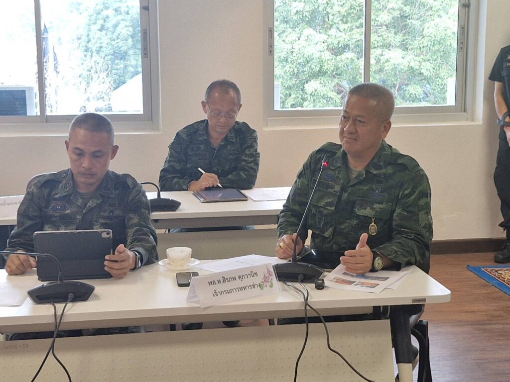 ในที่ประชุม พล.ท.สิรภพ รายงานความคืบหน้าของโครงการพัฒนาพื้นที่เพื่อป้องกันและลดผลกระทบจากภัยพิบัติในพื้นที่อำเภอแม่สาย ซึ่งดำเนินการโดยกรมการทหารช่าง กองทัพบก ประกอบด้วย 2 กิจกรรมหลัก ได้แก่ 1. การขุดลอกแม่น้ำรวก ระยะทางรวม 32 กิโลเมตร 2. การก่อสร้างแนวป้องกันชั่วคราว-กึ่งถาวร ในเขตเมืองแม่สาย ระยะทาง 3,600 เมตร โครงการเริ่มดำเนินการตั้งแต่วันที่ 18 เมษายน 2568 ปัจจุบันงานขุดลอกแม่น้ำรวกแล้วเสร็จประมาณ 15% และงานแนวป้องกันดำเนินการไปแล้ว 34% โดยกองทัพบกมีเป้าหมายให้แล้วเสร็จก่อนเดือนมิถุนายน เพื่อรองรับฤดูน้ำหลาก