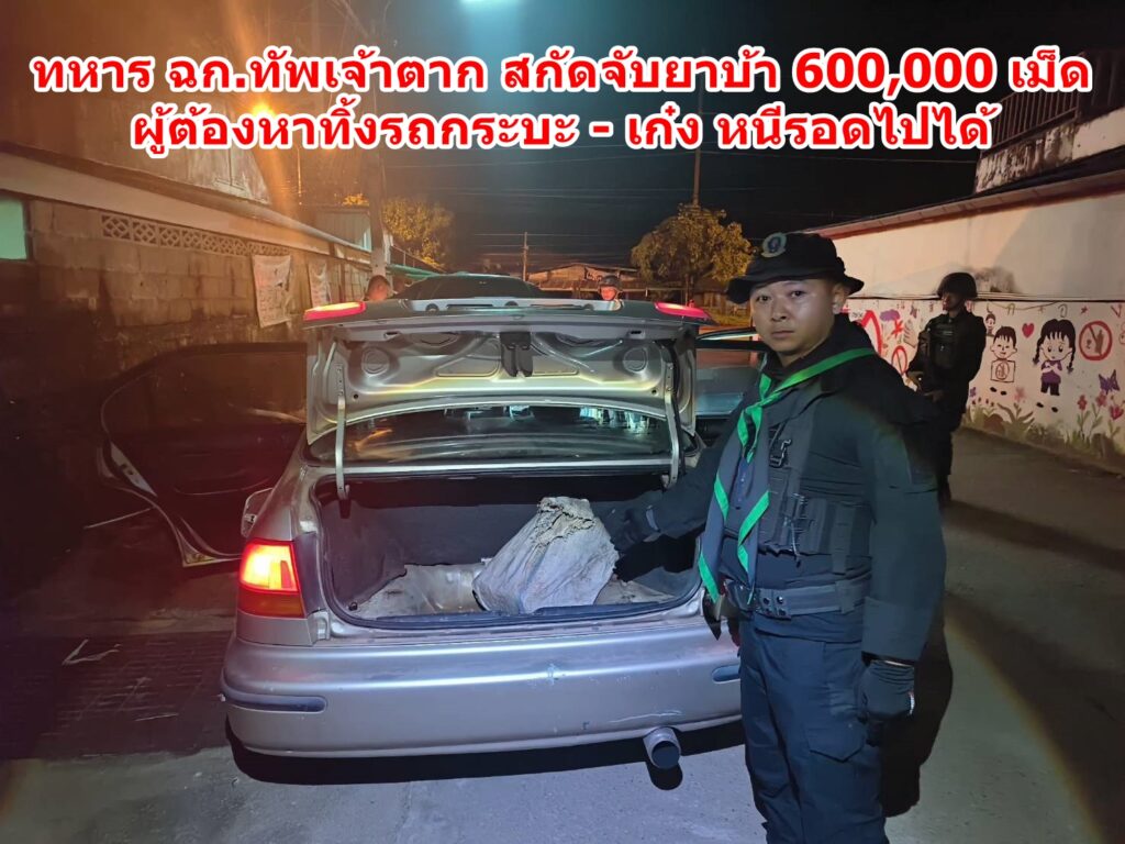 ทหาร ฉก.ทัพเจ้าตาก สกัดจับยาบ้า 600,000 เม็ด ผู้ต้องหาทิ้งรถกระบะ – เก๋ง หนีรอดไปได้
