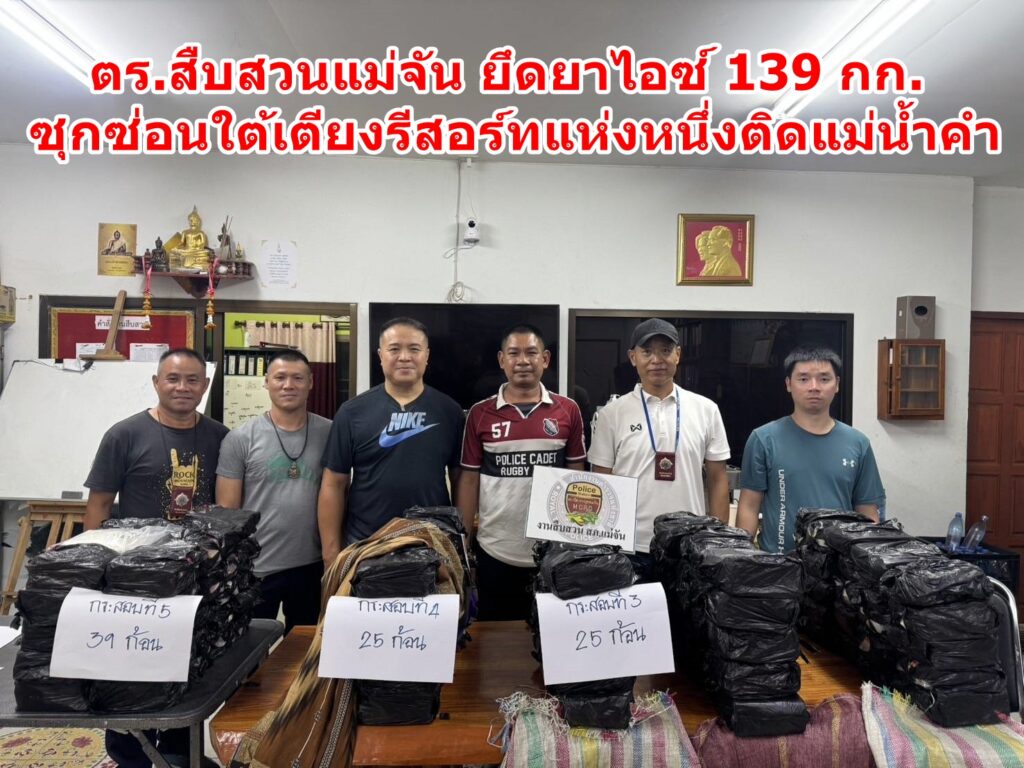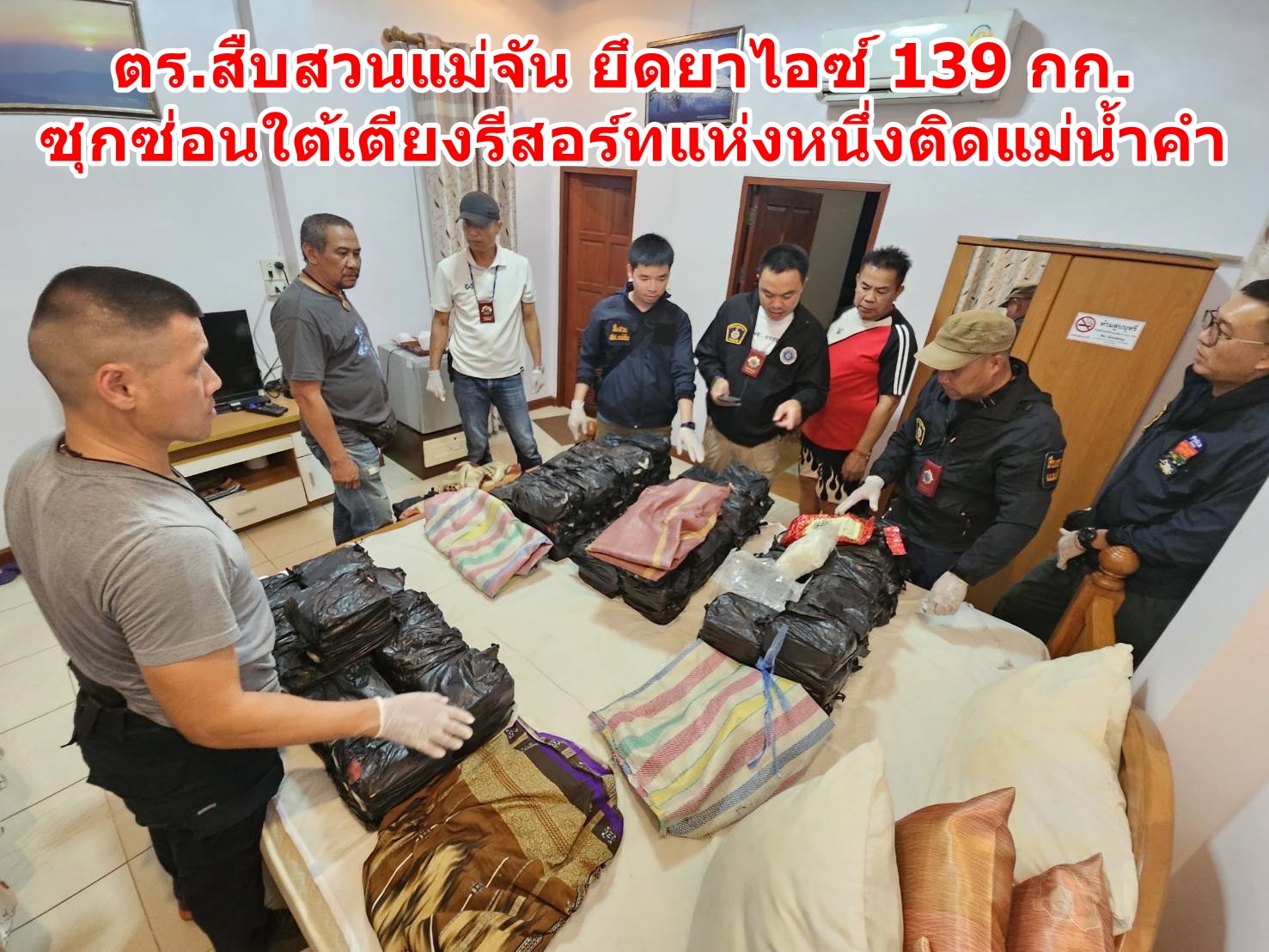 ตร.สืบสวนแม่จัน ยึดยาไอซ์ 139 กก. ซุกซ่อนใต้เตียงรีสอร์ทแห่งหนึ่งติดแม่น้ำคำ
