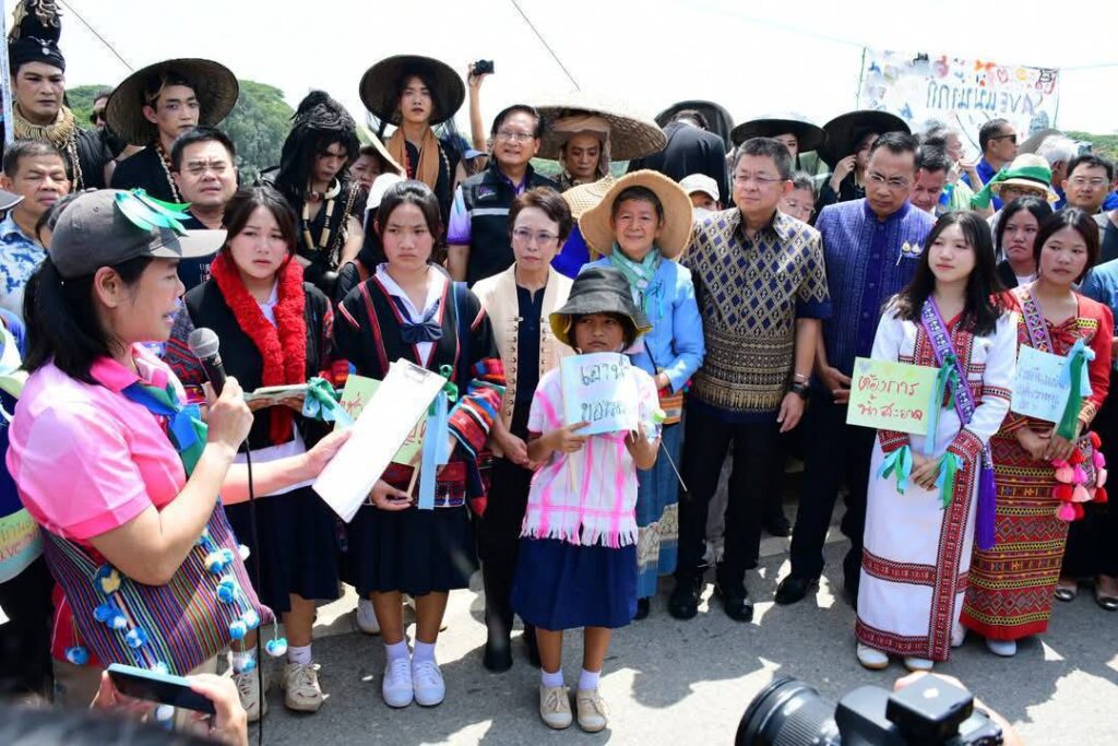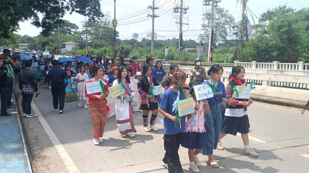 เมื่อวันที่ 5 มิ.ย. 68 เวลา 08.00 น. กลุ่มเครือข่ายภาคประชาสังคมและเครือข่ายภาคประชาชน ในพื้นที่ จ.เชียงราย นำโดย นายนิวัฒน์ ร้อยแก้ว ประธานกลุ่มรักษ์เชียงของ ดร.สืบสกุล กิจนุกร สำนักวิชานวัตกรรมสังคม มหาวิทยาลัยแม่ฟ้าหลวง น.ส.เพียรพร ดีเทศน์ เลขาธิการมูลนิธิพัฒนาชุมชนและเขตภูเขา และ นางเตือนใจ ดีเทศน์ อดีต สว. จัดกิจกรรมต่อต้านการทำเหมืองแร่ในพื้นที่ต้นแม่น้ำกกและแม่น้ำสาย และเรียกร้องให้ภาครัฐเร่งแก้ไขปัญหาสารพิษในแม่น้ำ โดยใช้ชื่อกิจกรรมว่า “ปอยหลวงปิดเหมืองแร่” (กิจกรรมฯ จัดตรงกับวันสิ่งแวดล้อม) ณ บริเวณ สวนสาธารณะแม่ฟ้าหลวง (สนาม รด.) พื้นที่ อ.เมืองเชียงราย จว.ช.ร. โดยมีกิจกรรมที่สำคัญ อาทิ การแสดงดนตรี การตั้งโต๊ะเชิญชวนพีน้องประชาชน ร่วมลงชื่อเพื่อเรียกร้องให้รัฐบาลเจรจาและดำเนินการเพื่อยุติการทำเหมืองที่ต้นน้ำกกและต้นน้ำ พิธีกรรมทางศาสนา,กิจกรรมติดป้ายผ้าที่เขียนข้อความรณรงค์เรียกร้องให้หยุดการทำเหมืองและโปรยดอกไม้ (บนสะพานแม่น้ำกก) ขบวนแห่ปอยหลวงปิดเหมืองแร่ / ขบวนแห่ศิลปะ ด้วยการเดินเท้าจากสวนสาธารณะแม่ฟ้าหลวงขึ้นไปยังสะพานแม่น้ำกก เพื่อยื่นหนังสือเรียกร้องฯ ถึงผู้นำไทย สำนักประสานและส่งเสริมการคุ้มครองผู้บริโภคจังหวัด ประเทศเมียนมา และ กองกำลังว้า ผ่าน นายขจร ศรีชวโนทัย รองปลัด มท. และเดินขบวนไปที่ศาลากลางจังหวัดเชียงราย (ระยะทาง ประมาณ 700 ม.) และปิดการดำเนินกิจกรรมด้วยการรับฟังการให้ข้อมูลสถานการณ์ และการดำเนินการด้านต่างๆ กรณีภัยพิบัติจากสารปนเปื้อนในแม่น้ำกก แม่น้ำสาย แม่น้ำรวก และแม่น้ำโขง โดยมี นายชรินทร์ ทองสุข ผู้ว่าราชการจังหวัดเชียงราย / ผอ.รมน.จังหวัดเชียงราย. เป็นประธานฯ และหน่วยงานที่เกี่ยวข้อง ณ ห้องประชุมจอมกิตติ ชั้น 3 ศาลากลางจังหวัดเชียงราย มีผู้เข้าร่วมกิจกรรม ประมาณ 1,000 คน ซึ่งได้ยุติกิจกรรม “ปอยหลวงปิดเหมืองแร่ในรัฐฉานเมียนมา ” ในเวลา 12.00 น. ของวันนี้…