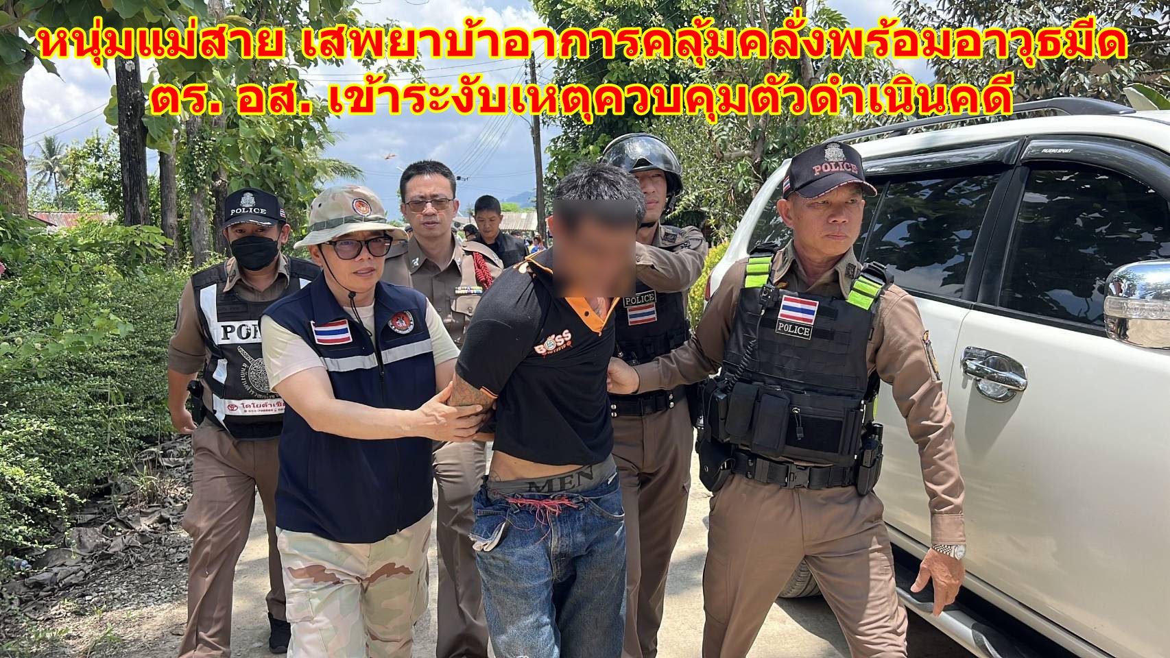 หนุ่มแม่สาย เสพยาบ้าอาการคลุ้มคลั่งพร้อมอาวุธมีด ตร.เข้าระงับเหตุควบคุมตัวดำเนินคดี