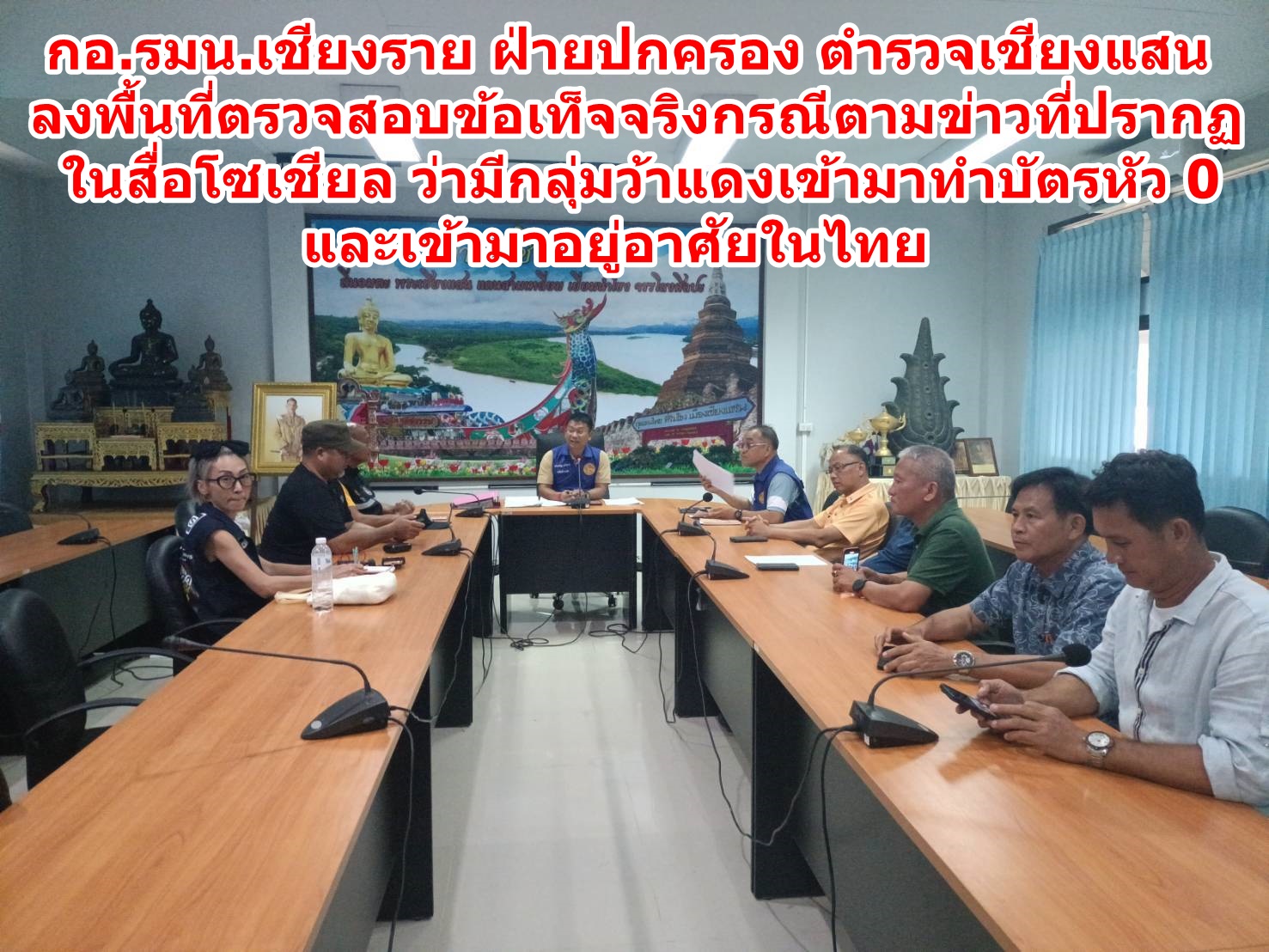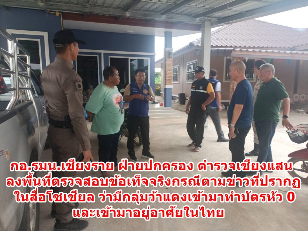 กอ.รมน.เชียงราย ฝ่ายปกครอง ตำรวจเชียงแสน ลงพื้นที่ตรวจสอบข้อเท็จจริง กรณีตามข่าวที่ปรากฏในสื่อโซเชียล ว่ามีกลุ่มว้าแดงเข้ามาทำบัตรหัว 0 และอยู่อาศัยในไทย