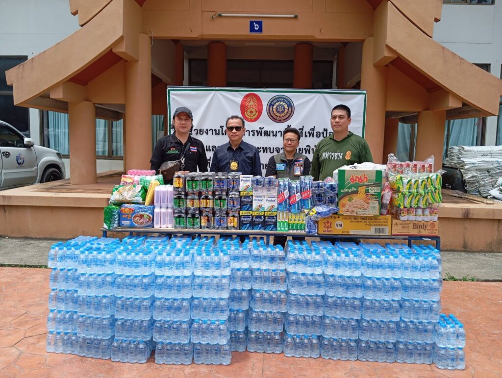 มอบสิ่งของให้แก่ เหล่าๆ ทหารช่าง ที่ปฎิบัติหน้าที่ สร้างแนวป้องกัน- ขุดลอก แม่น้ำสาย – น้ำรวก