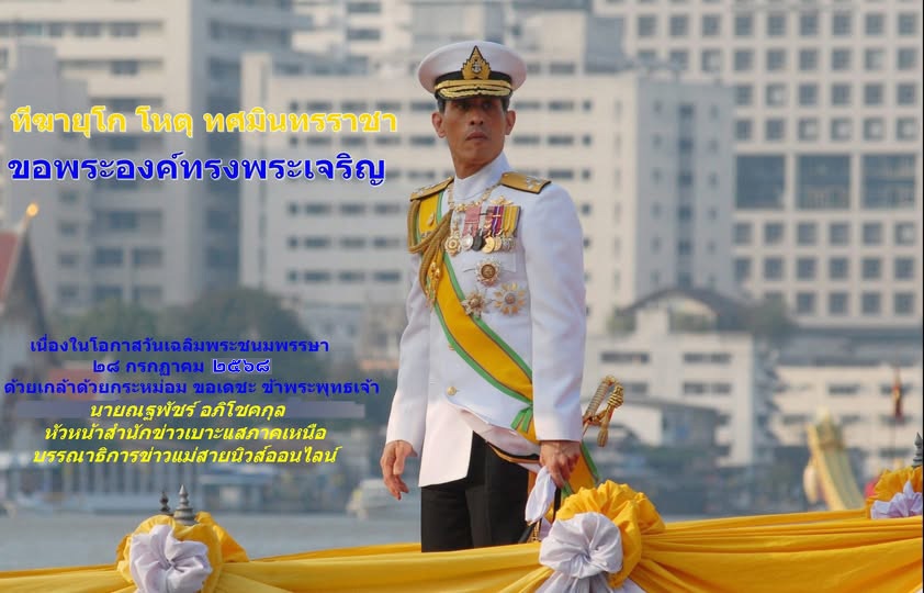 28 กรกฎาคม 2568 ด้วยเกล้าด้วยกระหม่อม ขอเดชะ ข้าพระพุทธเจ้า นายณฐพัชร์ อภิโชคกุล หัวหน้าสำนักข่าวเบาะแสภาคเหนือ บรรณาธิการข่าวแม่สายนิวส์ออนไลน์