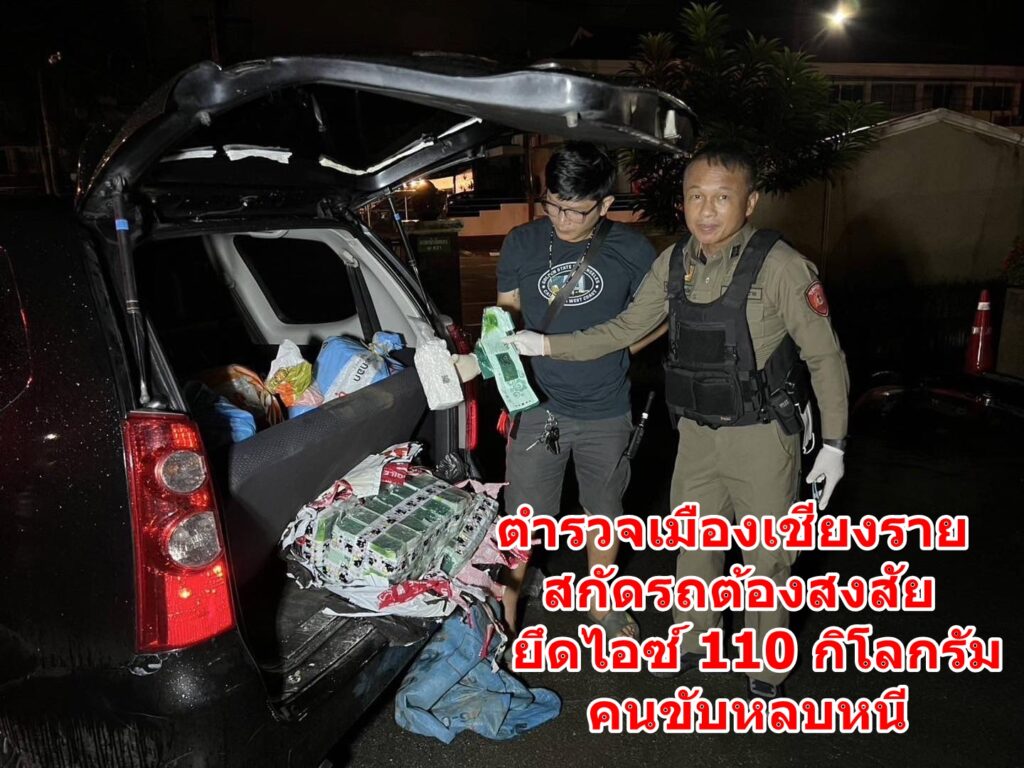 ตำรวจเมืองเชียงราย สกัดรถต้องสงสัย ยึดไอซ์ 110 กิโลกรัม คนขับหลบหนี