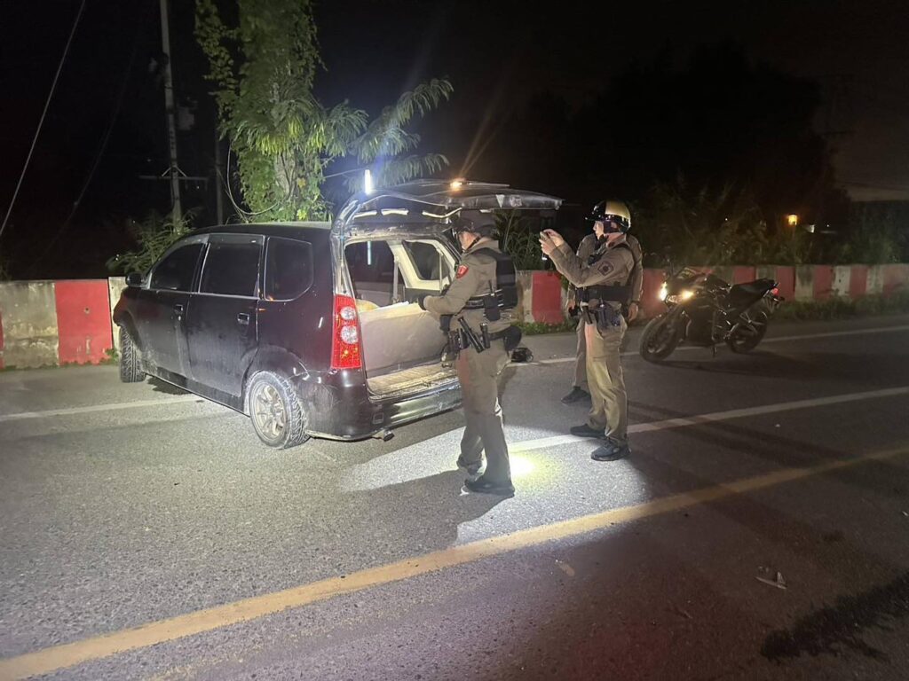 กระทั่งเวลา 02.00 น. พบรถยนต์โตโยต้า อแวนซ่า สีดำ (ทะเบียนกรุงเทพมหานคร) จอดอยู่ก่อนถึงจุดสกัด เจ้าหน้าที่จึงเข้าไปตรวจสอบ แต่รถคันดังกล่าวในขณะนั้นได้เร่งเครื่องหลบหนี มุ่งหน้าไปตามถนนจนถึงบริเวณโค้งจุดก่อสร้างทางรถไฟ ก่อนเสียหลักชนแท่งปูนแบริเออร์ ผู้ขับขี่จึงทิ้งรถและหลบหนีเข้าไปในป่าข้างทางหายไปในความมืด