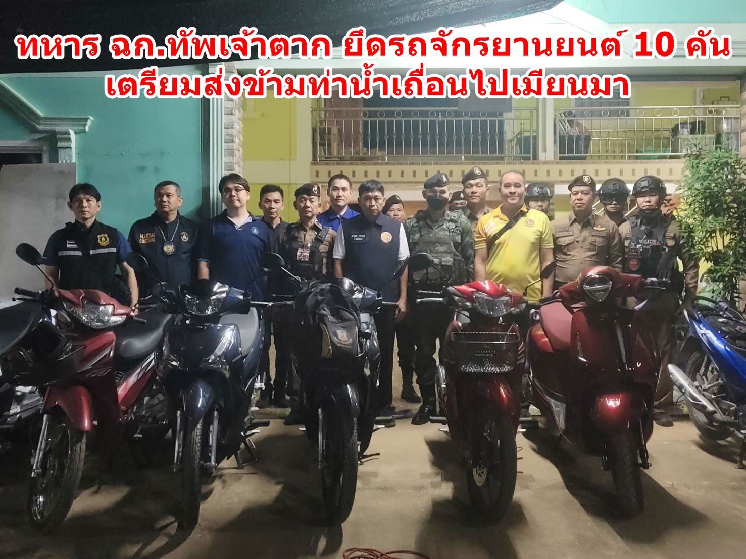 ทหาร ฉก.ทัพเจ้าตาก ยึดรถจักรยานยนต์ 10 คัน เตรียมส่งข้ามท่าน้ำเถื่อนไปเมียนมา
