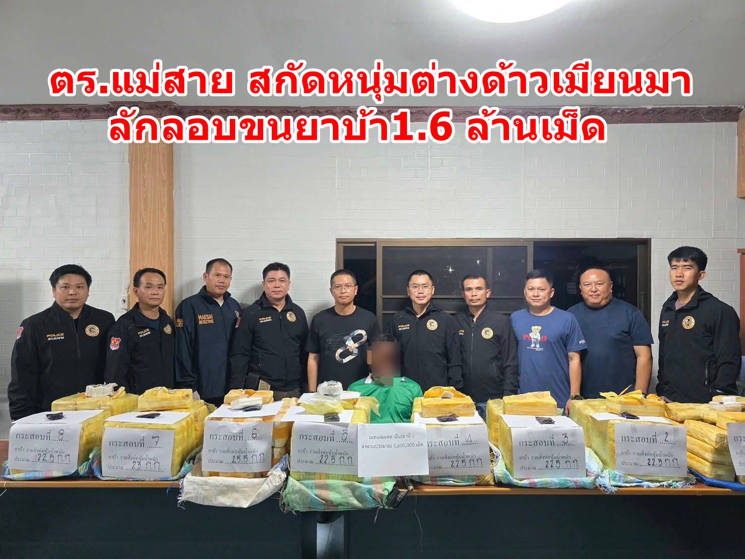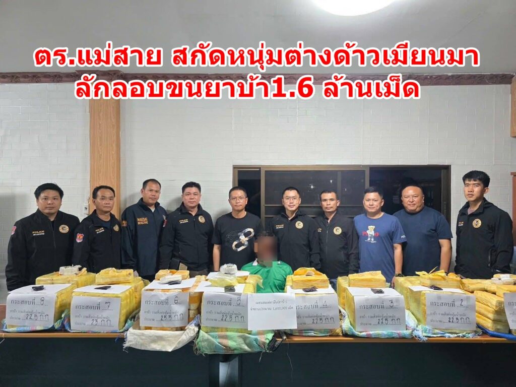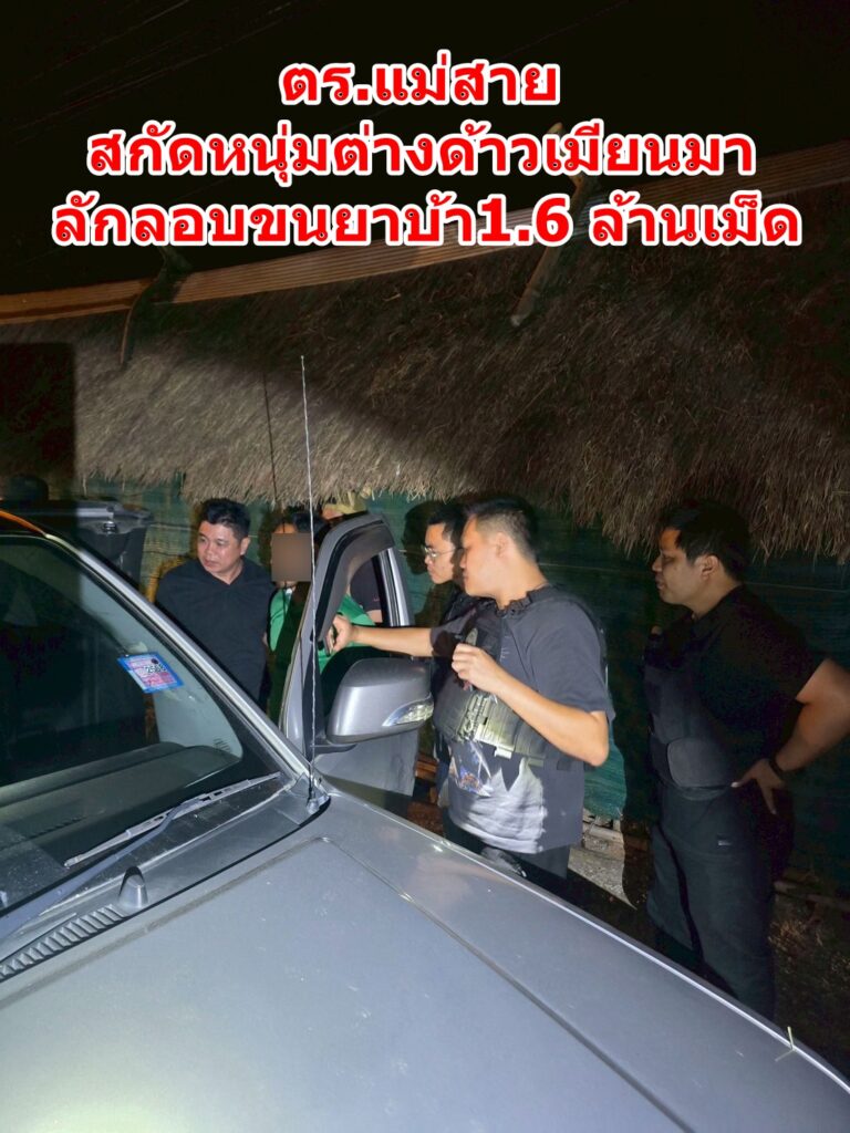 เมื่อกลางดึกของคืนวันนี้ ( 26 ส.ค.68 ) เวลา 21.00 น. พ.ต.ท.จิรพัชร ผู้มีทรัพย์ รอง ผกก.สส.สภ.แม่สาย พ.ต.ต.วงศกร ธนานนทพันธุ์ สว.สส.ฯ ร.ต.อ.ธนโชติ จันโย รอง สว.สส.สภ.แม่สายฯ ร.ต.อ.พัชรวัฒน์ ทวีวุฒิรัชต์ รอง สว.สส.ฯ พร้อมเจ้าหน้าที่ตำรวจชุดสืบสวน สภ.แม่สาย จ.เชียงราย ได้จับกุมตัวนายลีซัง หมื่อโป๊ะกู่ อายุ 33 ปี ต่างด้าวชาวสัญชาติเมียนมา พักอาศัยอยู่ บ.ร่องเจริญ จำบ้านเลขที่ไม่ได้ หมู่ที่ 11 ต.ศรีค้ำ อ.แม่จัน จ.เชียงราย พร้อมของกลางรถยนต์กระบะจำนวน 1 คัน และยาเสพติดประเภทยาบ้าจำนวนกว่า 1.6 ล้านเม็ด ดำเนินคดีตามกฎหมาย