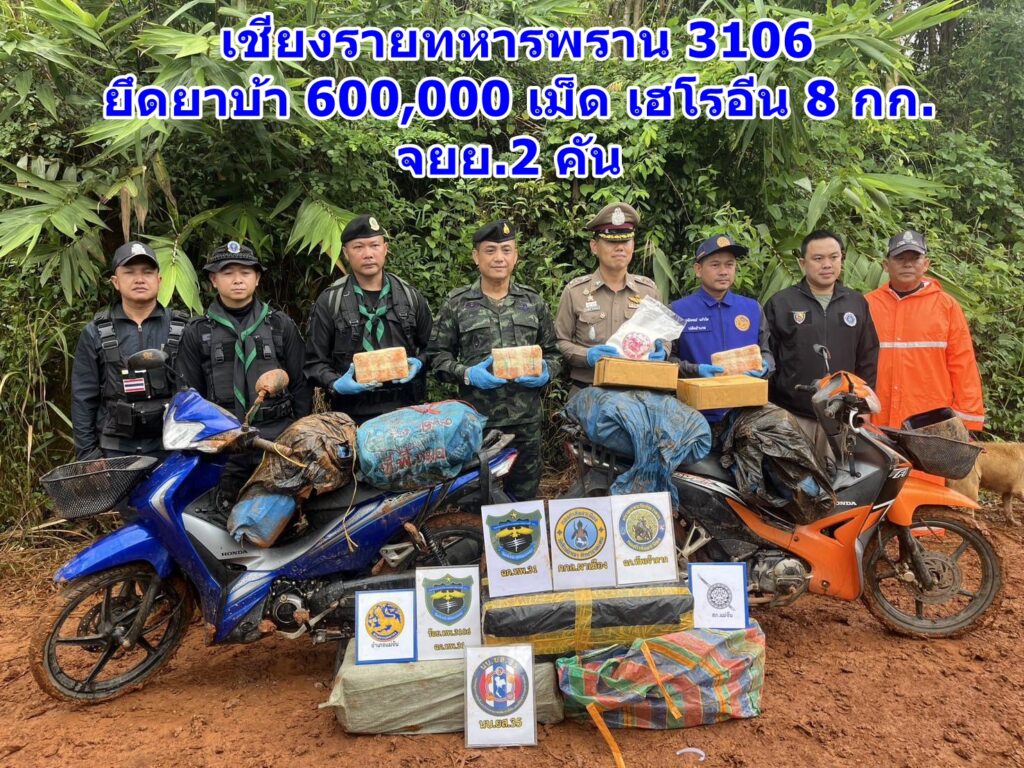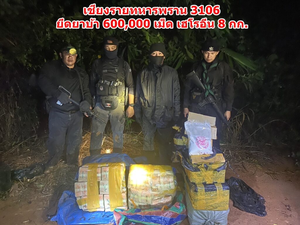 เชียงรายทหารพราน 3106 ยึดยาบ้า 600,000 เม็ด เฮโรอีน 8 กก.