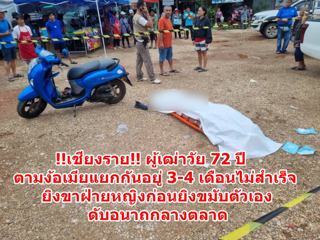 !!เชียงราย!! ผู้เฒ่าวัย 72 ปี ตามง้อเมียแยกกันอยู่ 3-4 เดือนไม่สำเร็จ ยิงขาฝ่ายหญิงก่อนยิงขมับตัวเองดับอนาถกลางตลาด