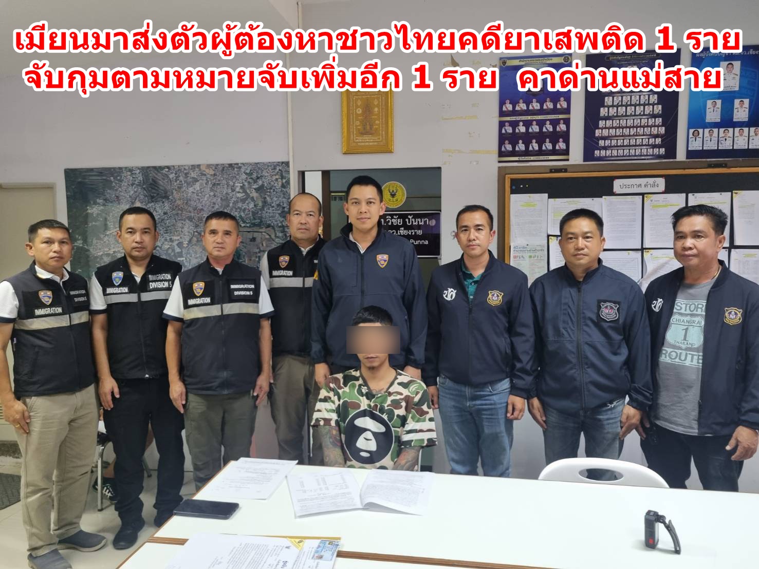เมียนมาส่งตัวผู้ต้องหาชาวไทยคดียาเสพติด 1 ราย จับกุมตามหมายจับเพิ่มอีก 1 ราย คาด่านแม่สาย