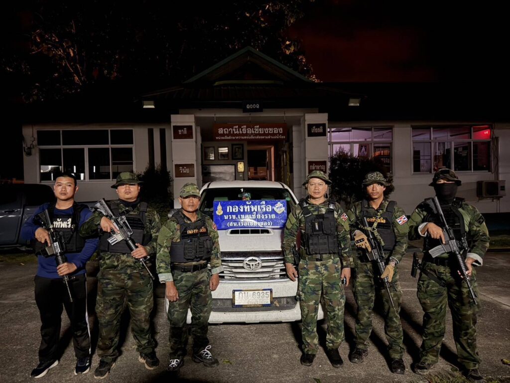 เมื่อกลางดึกของคืนวันที่ 14 ต.ค.68 ที่ผ่านมา ทางด้าน.. พล.ร.ต.ณรงค์ เอมดี ผบ.หน่วยเรือรักษาความสงบเรียบร้อยตามลำแม่น้ำโขง (นรข.) น.อ.ภากร มาเนียม ผบ.นรข.เขตเชียงราย ได้รับแจ้งว่าจะมีการลักลอบนำรถยนต์ส่งออกนอกราชอาณาจักร บริเวณริมฝั่งแม่น้ำโขงพื้นที่บ้านห้วยเอียน ต.หล่ายงาว อ.เวียงแก่น จ.เชียงราย จึงได้สั่งการให้ ร.อ.ชัชนันท์ โสดา หน.สน.เรือเชียงของ จัดชุดซุ่มเฝ้าตรวจไปดักซุ่ม กระทั่งเวลาประมาณ 20.10 น. ชุดซุ่มเฝ้าตรวจได้ตรวจพบเรือกาบเพลายาว 2 ลำ ตีแพคู่ขนานแล่นจากใต้น้ำขึ้นเหนือน้ำ เข้ามาจอดบริเวณจุดที่ได้รับแจ้งและพบมีรถยนต์กระบะ ยี่ห้อโตโยต้า รุ่นวีโก้ สีขาว ป้ายทะเบียน จ.สระบุรี ขับมาจากจุดชมวิวห้วยเอียนและเข้าไปจอดบริเวณท่าน้ำโดยหันหัวรถลงแม่น้ำโขง จากนั้นเรือกาบเพลายาวได้เตรียมรับรถขึ้นเรือ เจ้าหน้าที่ทหารเรือ นรข.จึงแสดงตัวเข้าไปตรวจสอบ แต่เมื่อพลขับรถยนต์กระบะเมื่อรู้ว่าเป็นเจ้าหน้าที่จึงได้ทิ้งของกลางทั้งหมดและอาศัยความมืดส่วนเรือกาบเพลายาวทั้ง 2 ลำ ได้แล่นจากจุดเกิดเหตุไปยังฝั่งประเทศเพื่อนบ้านอย่างรวดเร็วเช่นกัน เจ้าหน้าที่จึงไม่สามารถติดตามตัวผู้ต้องหามาได้ จึงได้ประสานด่านศุลกากรเชียงของ และทหารพราน ร้อย ทพ.3103 ฉก.ทพ.31 ไปช่วยกันตรวจสอบของกลางเป็นรถยนต์กระจำนวน 1 คันกังกล่าว พร้อมแจ้งข้อกล่าวหาแก่ผู้หลบหนีไปได้ว่า ร่วมกันลักลอบนำพารถยนต์ออกนอกราชอาณาจักรโดยไม่ผ่านพิธีการทางศุลกากร จาปนั้นทำการตรวจยึดและนำไปตรวจสอบโดยละเอียด ที่ สน.เรือเชียงของ ต่อไป.