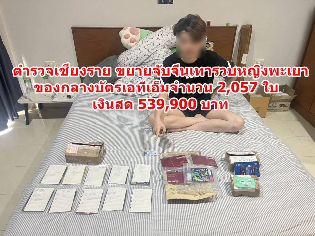 ตำรวจเชียงราย ขยายจับจีนเทารวบหญิงพะเยา ของกลางบัตรเอทีเอ็มจำนวน 2,057 ใบ เงินสด 539,900 บาท