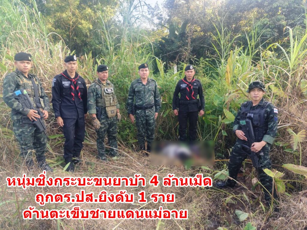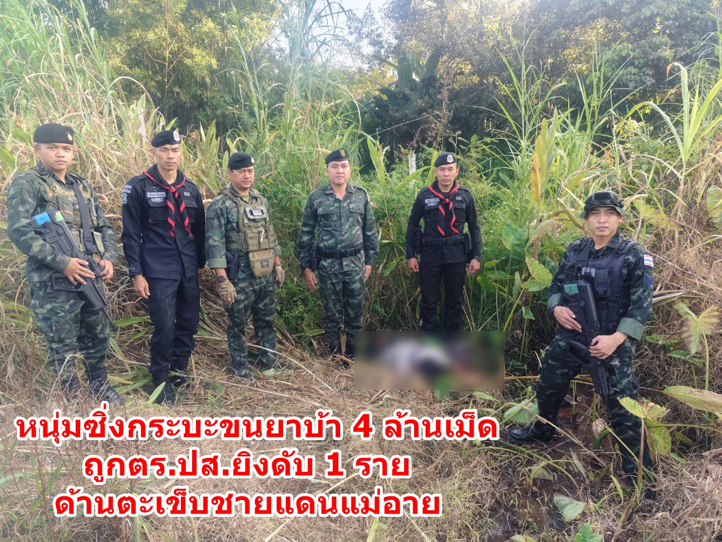 หนุ่มซิ่งกระบะขนยาบ้า 4 ล้านเม็ด ถูกตร.ปส.ยิงดับ 1 ราย ด้านตะเข็บชายแดนแม่อาย