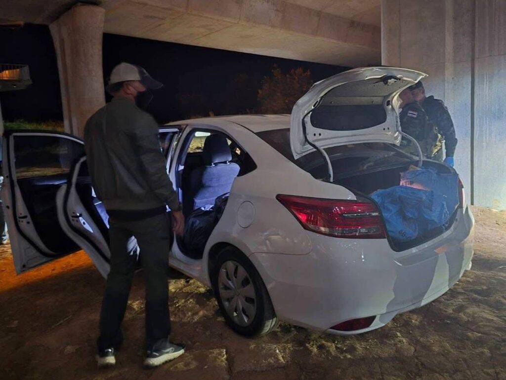 ต่อมาได้ตรวจพบรถยนต์เกง ยี่ห้อโตโยต้า สีขาว ไม่ติดแผ่นป้ายทะเบียนขับไปถึงบริเวณสะพานข้ามแม่น้ำกกบ้านฮ่องอ้อ ต.ดอยฮาง อ.เมืองเชียงราย จึงได้เข้าทำการสกัดเอาไว้ได้สำเร็จ จากการตรวจสอบในรถพบมีนายธานิทเป็นคนขับมาตามลำพังและในรถพบบรรทุกกระสอบฟางมาเต็มเบาะและกระโปรงรถ ภายในกระสอบบรรจุยาเสพติดประเทยาบ้าจำนวนทั้งหมดประมาณ 1,098,000 เม็ด จึงได้จับกุมตัวนายธานิทเอาไว้ ก่อนนำส่งพนักงานสอบสวน สภ.แม่ยาว อ.เมืองเชียงราย เพื่อดำเนินคดีและขยายผลตามกฎหมายต่อไป.