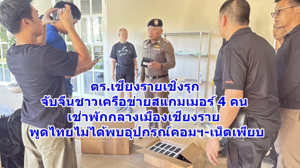 ตร.เชียงรายเชิงรุก จับชาวจีนเครือข่ายสแกมเมอร์ 4 คน เช่าพักกลางเมืองเชียงราย พูดไทยไม่ได้พบอุปกรณ์คอมฯ-เน็ตเพียบ