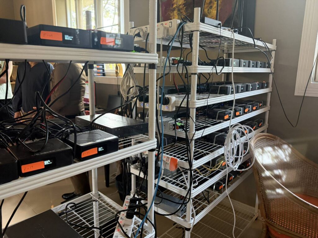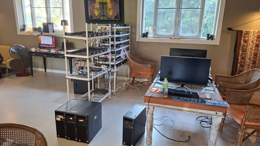 เจ้าหน้าที่ตำรวจจึงได้อำพรางตัวเองเป็นชาวบ้านพยายามเข้าไปตรวจดูในระยะประชิด ปรากฎว่าขณะกำลังเข้าไปใกล้ได้มีชาวจีนจำนวน 1 คน เดินออกมาจากบ้านเมื่อพบเห็นเจ้าหน้าที่ซึ่งเป็นคนแปลกหน้ากลับตื่นตกใจทั้งๆ ที่ไม่ได้แสดงตัวหรือแต่งกายเป็นเจ้าหน้าที่ตำรวจ ทำให้เจ้าหน้าที่เกรงว่าจะไหวตัวทันจึงได้วิ่งตามชายคนดังกล่าวไปจนถึงห้องโถงของบ้านเช่า ก็พบชายชาวจีนอีก 3 คน กลำงนั่งทำงานอยู่หน้าคอมพิวเตอร์โดยที่บริเวณใกล้กันพบมีเร้าเตอร์สำหรับต่อระบบอินเตอร์เน็ต และเซิร์ฟเวอร์สำหรับเก็บข้อมูลและประมวลผลวางเรียงรายอยู่บนชั้นวางเบื้องต้นประมาณ 20-30 อัน อุปกรณ์คอมพิวเตอร์อื่นๆ เช่น เครื่องคอมพิวเตอร์ ซิมบ๊อกซ์ ฯลฯ อีกเป็นจำนวนมาก