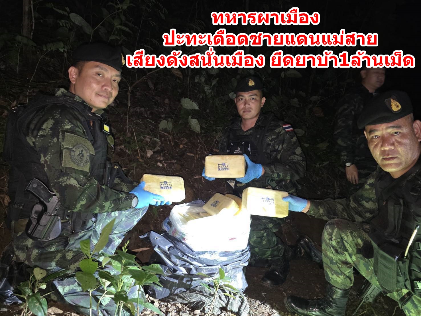 ทหารผาเมืองปะทะเดือดชายแดนแม่สายเสียงดังสนั่นเมือง ยึดยาบ้า1ล้านเม็ด