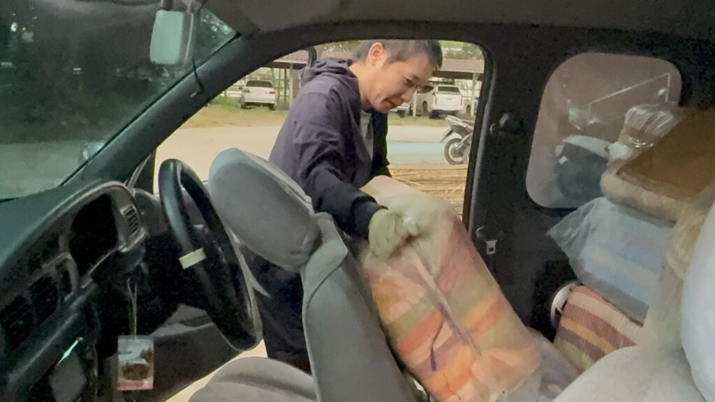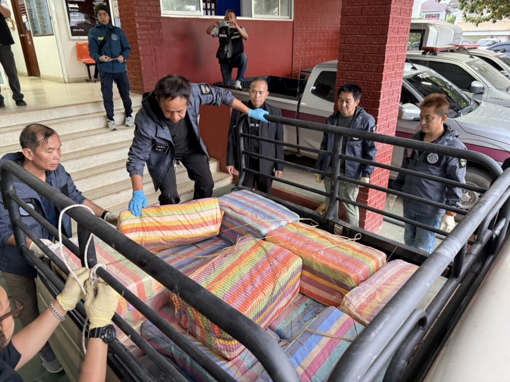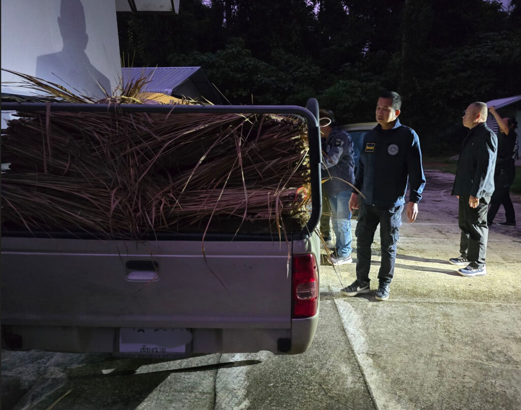 หลังจากเมื่อเย็นวันที่ 13 พ.ย.ที่ผ่านมาเจ้าหน้าที่ได้รับแจ้งว่าได้มีรถยนต์กระบะคันดังกล่าวจอดอยู่ภายในฌาปนสถานหมู่บ้านปงเคียน โดยมีสภาพบรรทุกไพรหญ้าคามาเต็มกระบะรถ เมื่อสอบถามชาวบ้านก็ทราบว่าไม่ใช่รถของคนในหมู่บ้านและมีลักษณะต้องสงสัยเนื่องจากจอดอยู่โดยไม่เคลื่อนไหวไปไหนมาทั้งวัน เจ้าหน้าที่จึงดักซุ่มอยู่บริเวณโดยรอบก็ไม่พบบุคคลใดเข้าไปที่รถคันดังกล่าว กระทั่งชวงเช้าวันที่ 14 พ.ย.เมื่อแน่ใจว่าไม่มีบุคคลใดอยู่จึงเข้าไปตรวจสอบรถ ปรากฎว่าที่ใต้ไพรหญ้าคาพบว่ามีการซุกซ่อนกระสอบฟางใบใหญ่หลากสีเอาไว้เป็นจำนวนมากและยังยัดไว้ในเบาะนั่งหลังรถจนเต็มนับรวมทั้งหมดจำนวน 24 ใบ