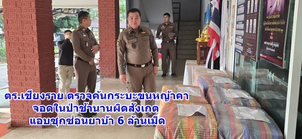 เจ้าหน้าที่จึงได้เปิดตรวจดูภายในกระสอบพบแต่ละใบบรรจุยาเสพติดประเภทยาบ้าใบละประมาณ 250,000 เม็ด รวมขอกลางยาบ้าทั้งหมดจำนวนประมาณ 6,000,000 เม็ด จึงได้ยึดไว้เป็นของกลาง และออกตรวจสอบหาหลักฐานการเป็นเจ้าของรถดังกล่าวเพื่อขยายผลติดตามจับผู้ที่เกี่ยวข้องมาดำเนินคดีตามกฎหมายต่อไป…