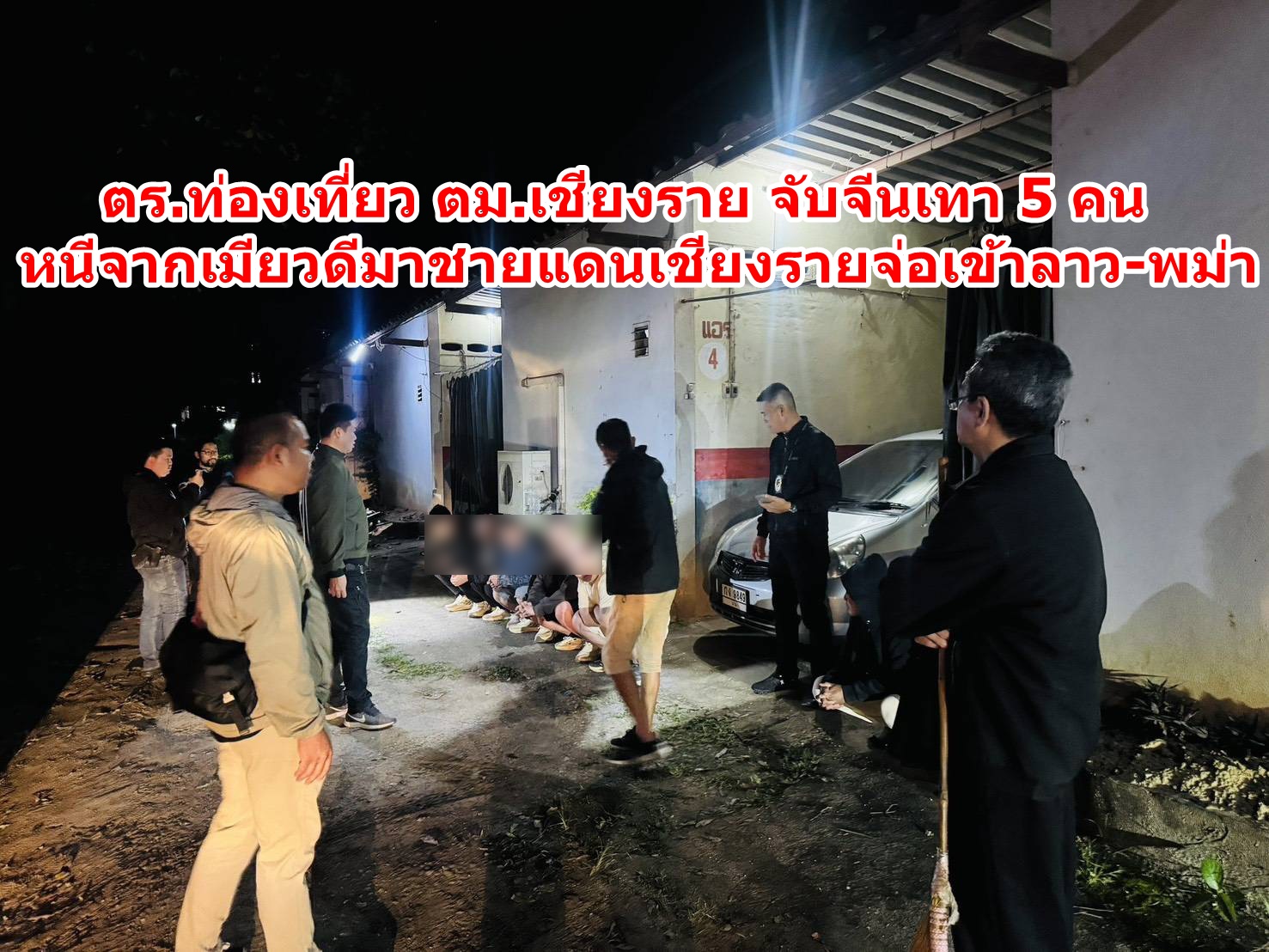 ตร.ท่องเที่ยว ตม.เชียงราย จับจีนเทา 5 คน หนีจากเมียวดีมาชายแดนเชียงรายจ่อเข้าลาว-พม่า