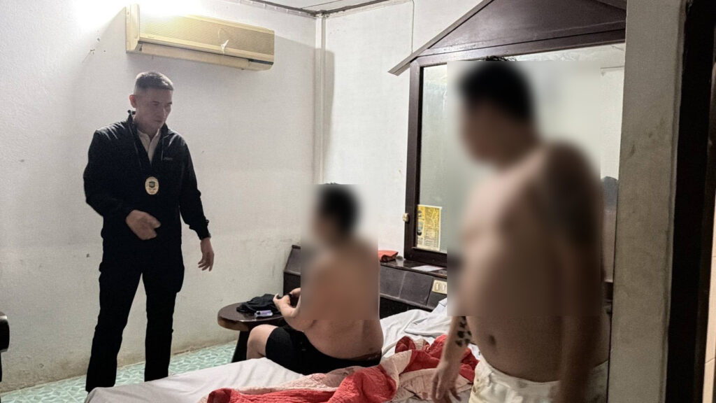 จากการดักซุ่มดูภายนอกเจ้าหน้าที่พบมีชาวต่างชาติลักษระเป็นชาวจีนจำนวน 5 คน นั่งรับประทานอาหารอยู่ข้างโรงแรมดังกล่าวเมื่อแล้วเสร็จได้กลับเข้าไปในโรงแรม เจ้าหน้าที่จึงเข้าไปขอตรวจสอบพบทั้งหมดพักอยู่ที่ห้องพักเลขที่ 4 และ 5 พบชาวจีนทั้งหมดชื่อว่า