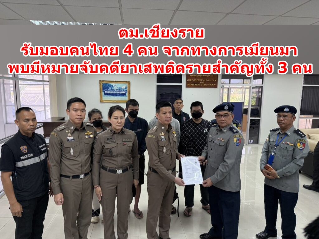 ตม.เชียงรายรับมอบคนไทย 4 คน จากทางการเมียนมา พบมีหมายจับคดียาเสพติดรายสำคัญทั้ง 3 คน