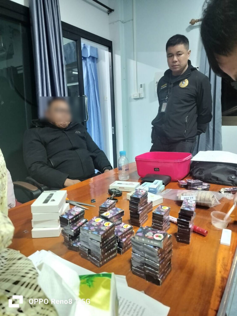 ตร.สืบแม่สาย จับหนุ่มใหญ่ตรังตระเวนขายพอตบุหรี่ไฟฟ้ายาเค 63 กล่อง ให้นักท่องราตรีสถานบันเทิงเมืองชายแดน