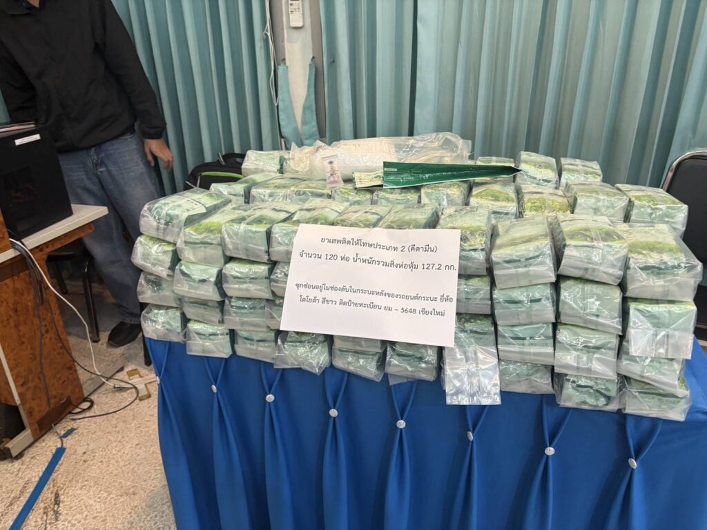 หลังจากวันที่ 23 ธ.ค.68 ที่ผ่านมาเจ้าหน้าที่ ป.ป.ส.สังกัด ปป.2 ได้รับแจ้งว่าจะมีรถยนต์กระบะ ยี่ห้อโตโยต้า รุ่นวีโก สีขาว ป้ายทะเบียน จ.เชียงใหม่ ขึ้นไปลักลอบขนยาเสพติดที่ชายแดนด้าน จ.เชียงราย จึงได้ออกติดตามกระทั่งพบรถคันดังกล่าวขับไปตามถนนพหลโยธินมุ่งหน้าไปที่ชายแดนไทย-เมียนมา อ.แม่สาย โดยเข้าไปพักที่บ้านหลังหนึ่งพื้นที่หมู่ 9 ต.เวียงพางคำ อ.แม่สาย จากนั้นได้ขับออกมาโดยเปลี่ยนแผ่นป้ายทะเบียนเป็นของประเทศเมียนมา หมายเลข 7J 3104 และขับข้ามแดนไปยัง จ.ท่าขี้เหล็ก ประเทศเมียนมา