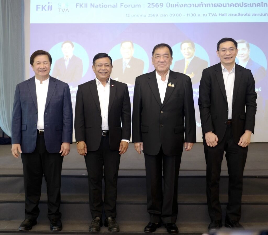 สถาบันเอฟเคไอไอ.( FKII Thailand)ร่วมกับ สถาบันทิวา (TVA Institute) จัดงานเสวนาครั้งสำคัญ FKII National Forum: “2569 ปีแห่งความท้าทายอนาคตประเทศไทย” ณ TVA Hall สวนเสียงไผ่ สถาบันทิวา ทาวน์อินทาวน์ กรุงเทพมหานครเมื่อ12ม.คที่ผ่านมา เพื่อร่วมวิเคราะห์ทิศทางและแนวโน้มเศรษฐกิจไทยปี 2569 ซึ่งถูกมองว่าเป็นปีแห่งจุดเปลี่ยนสำคัญที่ประเทศไทยต้องเร่งปรับโครงสร้างขนานใหญ่เพื่อความอยู่รอดท่ามกลางวิกฤตโลก