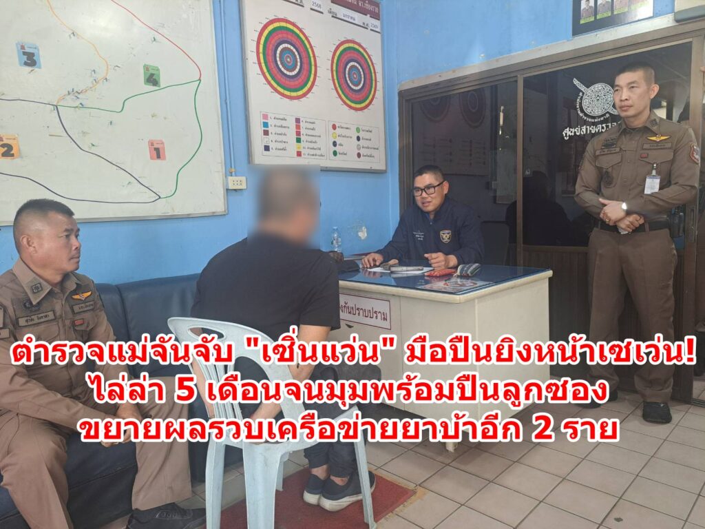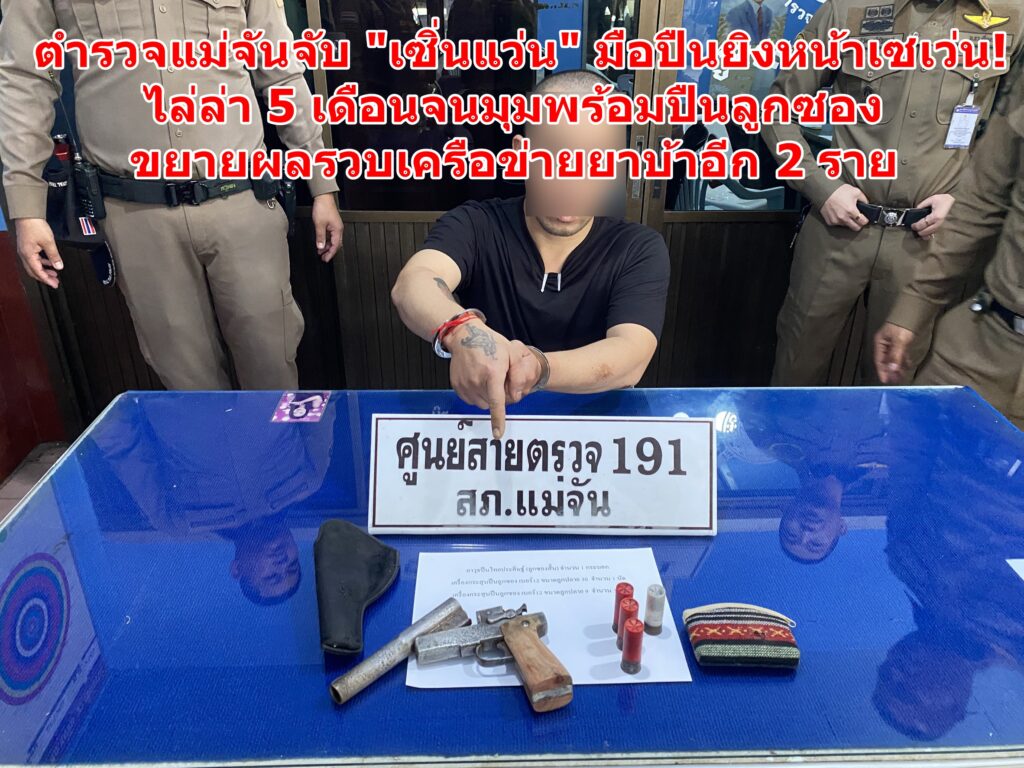 ตร.แม่จันจับ “เซิ่นแว่น” มือปืนยิงหน้าเซเว่น! ไล่ล่า 5 เดือนจนมุมพร้อมปืนลูกซอง ขยายผลรวบเครือข่ายยาบ้าอีก 2 ราย