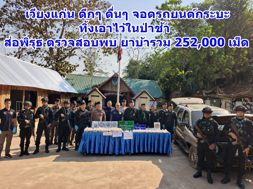 วันที่ 18 กุมภาพันธ์ 2569 เจ้าหน้าที่ทหาร ร้อย ทพ.3104 ฉก.ทพ.31 กองกำลังผาเมือง ได้ตรวจยึดของกลางเป็นรถยต์กระบะ ยี่ห้อฟอร์ด 7 ที่นั่ง สีเทา ไม่ติดแผ่นป้ายทะเบียน พร้อมยาเสพติดให้โทษประเภท 1 (ยาบ้า) จำนวน 252,000 เม็ด เพื่อขยายผลตามกฎหมาย หลังจากช่วงหัวค่ำวันที่ 17 กุมภาพันธ์ 2569 ที่ผ่านมา ทางเจ้าหน้าที่ทหารพรานร่วมกับ ร้อย.ตชด.326 ฉก.ตชด.32 ทำการลาดตระเวนเพื่อป้องกันและสกัดกั้นการกระทำความผิดตาม พ.ร.บ.ยาเสพติด พ.ศ. 2564 บริเวณพื้นที่ชายแดนไทย-เมียนมา ติดแม่น้ำโขงเขตหมู่บ้านท่าข้าม หมู่ 1 ต.ท่าข้าม อ.เวียงแก่น จ.เชียงราย