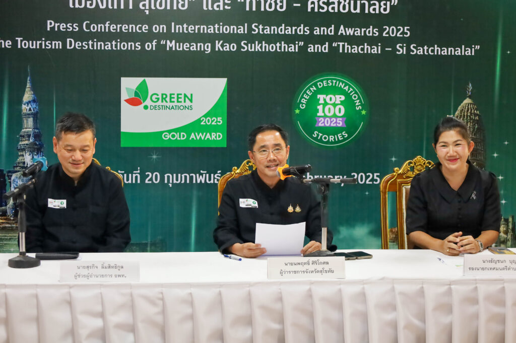 สำนักงานพื้นที่พิเศษเพื่อการท่องเที่ยวอย่างยั่งยืนอุทยานประวัติศาสตร์สุโขทัย จัดพิธีแถลงข่าวและส่งมอบมาตรฐานและรางวัลท่องเที่ยวยั่งยืนระดับโลก เพื่อประกาศความสำเร็จของแหล่งท่องเที่ยว “เมืองเก่า สุโขทัย” และ “ท่าชัย–ศรีสัชนาลัย” ที่ได้รับการยอมรับในเวทีนานาชาติ
