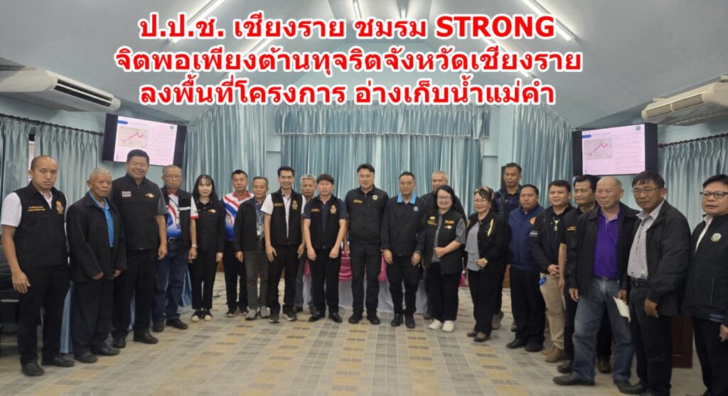 ป.ป.ช. เชียงราย – ชมรม STRONG – จิตพอเพียงต้านทุจริตจังหวัดเชียงราย ลุยต่อเสริมพลัง STRONG ประชาชนถอนหมุดพื้นที่เสี่ยงทุจริต จับตามองและแจ้งเบาะแส โครงการอ่างเก็บน้ำแม่คำ หมู่ที่ 13 บ้านสามัคคีใหม่ ต.แม่ฟ้าหลวง อ.แม่จัน งบประมาณดำเนินการมากกว่า 100,000,000 บาท (หนึ่งร้อยล้านบาท)
