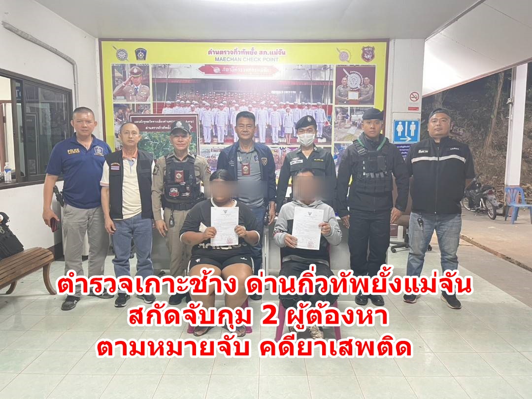 เมื่อคืนของวันที่ 30 มีนาคม 2569 เวลา 20.30 น. ที่ผ่านมา ภายใต้โดยการอำนวยการของ พลตำรวจตรี มานพ เสนากุล ผู้บังคับการจังหวัดเชียงราย พันตรวจเอก ศุภกร พรหมเจริญ ผู้กำกับ สภ.เกาะช้าง พันตำรวจเอก เกียรติศักดิ์ จิตรประสาร ผู้กำกับ สภ.แม่จัน พันตำรวจโท กฤตกรณ์ กันจินะ สารวัตรสืบสวน สภ.เกาะช้าง ร้อยตำรวจเอก นิยม ใจหมั่น รองสารวัตรสืบสวนเกาะช้าง พร้อมเจ้าหน้าที่ตำรวจชุดสืบสวน สภ.เกาะช้าง และเจ้าหน้าตำรวจ ทหาร ด่านตรวจกิ่วทัพยั้งแม่จัน ได้ร่วมกันสกัดจับกุม 2 ผู้ต้องหาตามหมายจับศาลอาญาจังหวัดเชียงราย 1.นายสมเดช คำเงิน อายุ 59 ปี อยู่บ้านเลขที่ 244 หมู่ 2 ตำบลแม่สาย อ.แม่สาย จังหวัดเชียงราย 2. น.ส.ภาวิณีย์ มีใจรักษ์ อายุ 28 ปี อยู่บ้านเลขที่ 125 หมู่ 9 ตำบลแม่กา อ.เมืองพะเยา จังหวัดพะเยา เป็นผู้ต้องหา ทั้ง 2 คน ตามหมายจับ ศาลจังหวัดเชียงราย ลงวันที่ 30 มีนาคม 2569