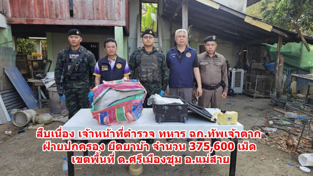 สืบเนื่อง เจ้าหน้าที่ตำรวจ ทหาร ฉก.ทัพเจ้าตาก ฝ่ายปกครอง ยึดยาบ้า จำนวน 375,600 เม็ด บริเวณบ้านเช่าหลังหนึ่ง ในเขตพื้นที่หมู่บ้านใหม่พัฒนา หมู่ 8 ต.ศรีเมืองชุม อำเภอแม่สาย เขตพื้นที่รับผิดชอบ สภ.เกาะช้าง เมื่อวันที่ 1 มีนาคม 2569 เมื่อต้นเดือนที่ผ่านมา ทำให้เจ้าหน้าที่ตำรวจชุดสืบสวน สภ.เกาะช้าง หาหลักฐานที่เชื่อมโย่งของกลุ่มขบวนการค้ายาเสพติดที่ยึดได้ พร้อมหาหลักฐานยื่นต่อศาลจังหวัดเชียงราย ออกหมายจับ 2 ผู้ต้องหา ที่สมคบกันตั้งแต่สองคนขึ้นไปเพื่อกระทำความผิดเกี่ยวกับยาเสพติด ในครั้งนี้