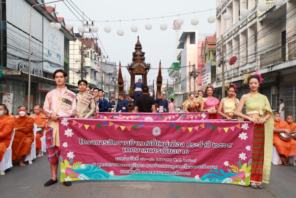 บรรยากาศเต็มไปด้วยความคึกคักและเปี่ยมด้วยศรัทธา โดยเทศบาลนครเชียงราย จัดงาน “ป๋าเวณีปี๋ใหม่เมือง ประจำปี 2569” อย่างยิ่งใหญ่ ณ บริเวณสี่แยกสุริวงศ์ ถนนธนาลัย อำเภอเมืองเชียงราย